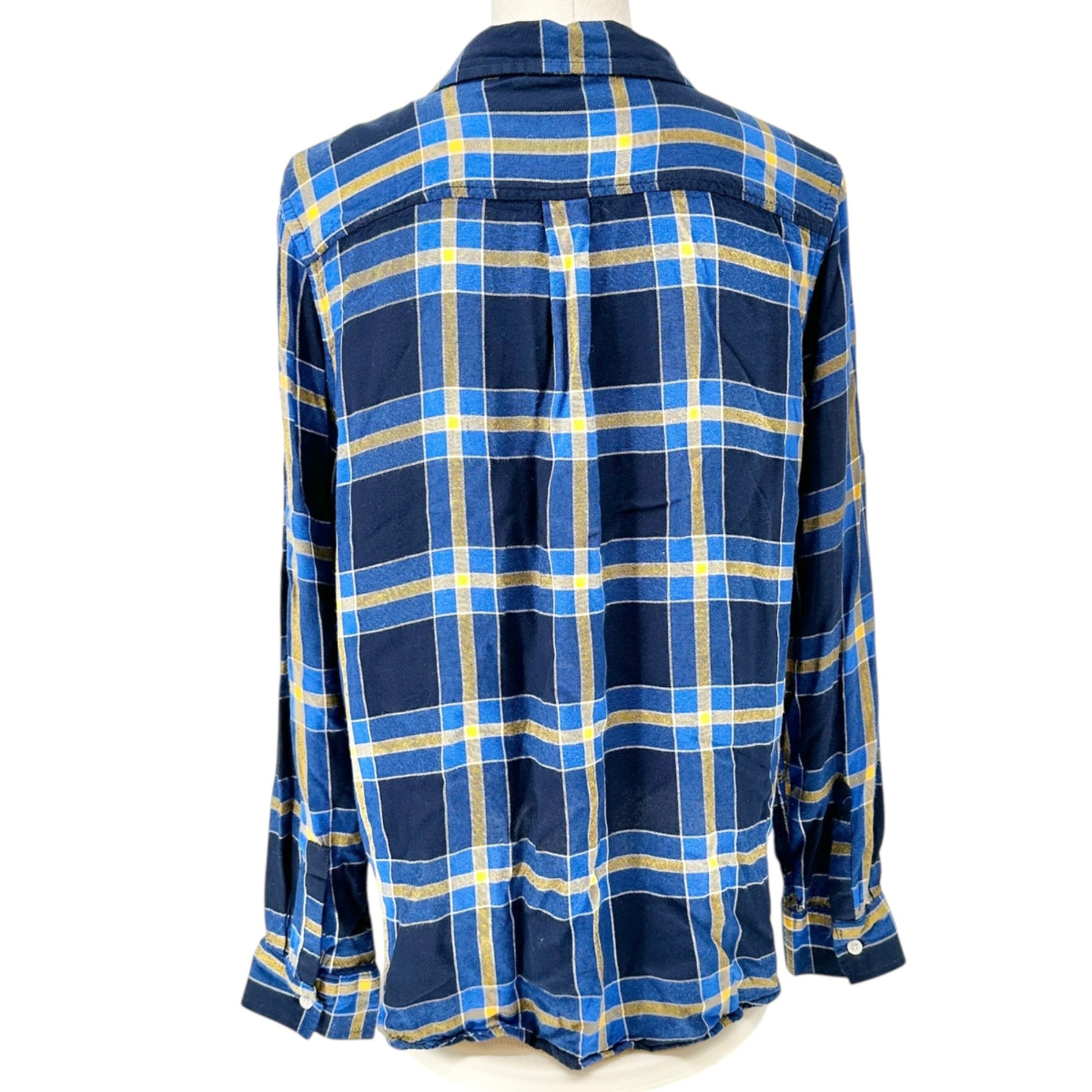 Route 66 Flannel Shirt Womens XL Blue Yellow Plaid Button-Up Long Sleeve Casual