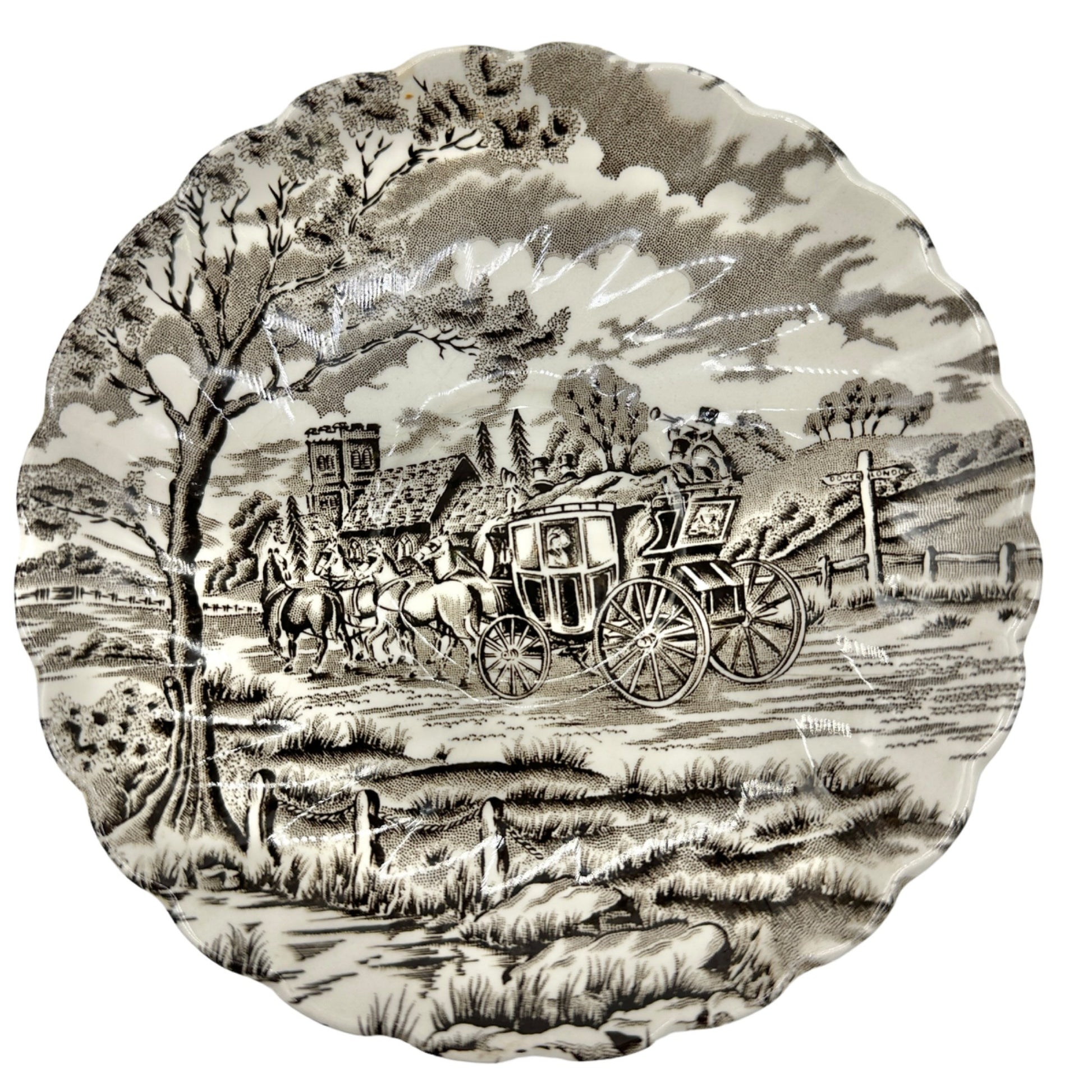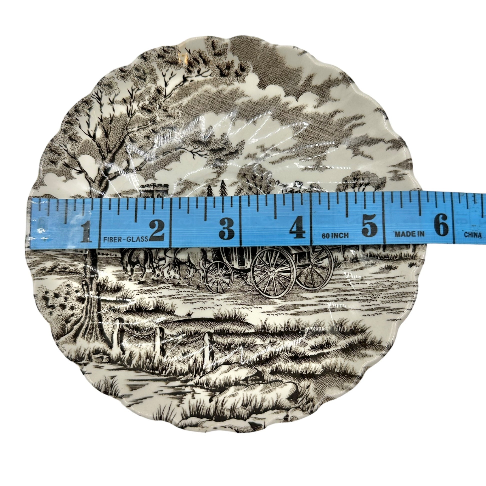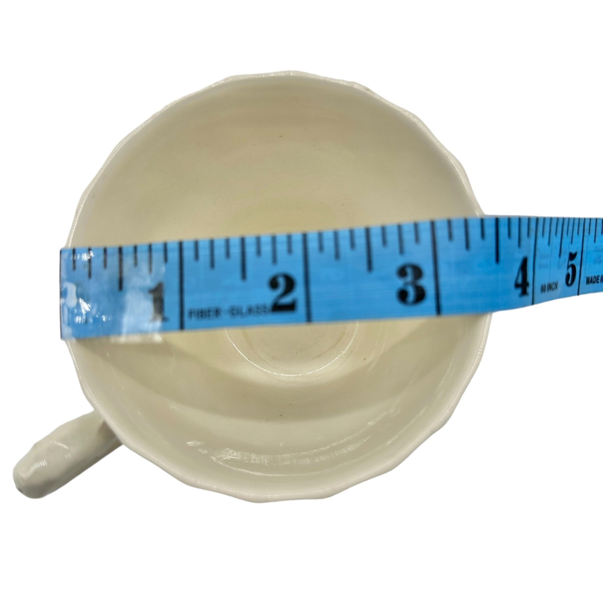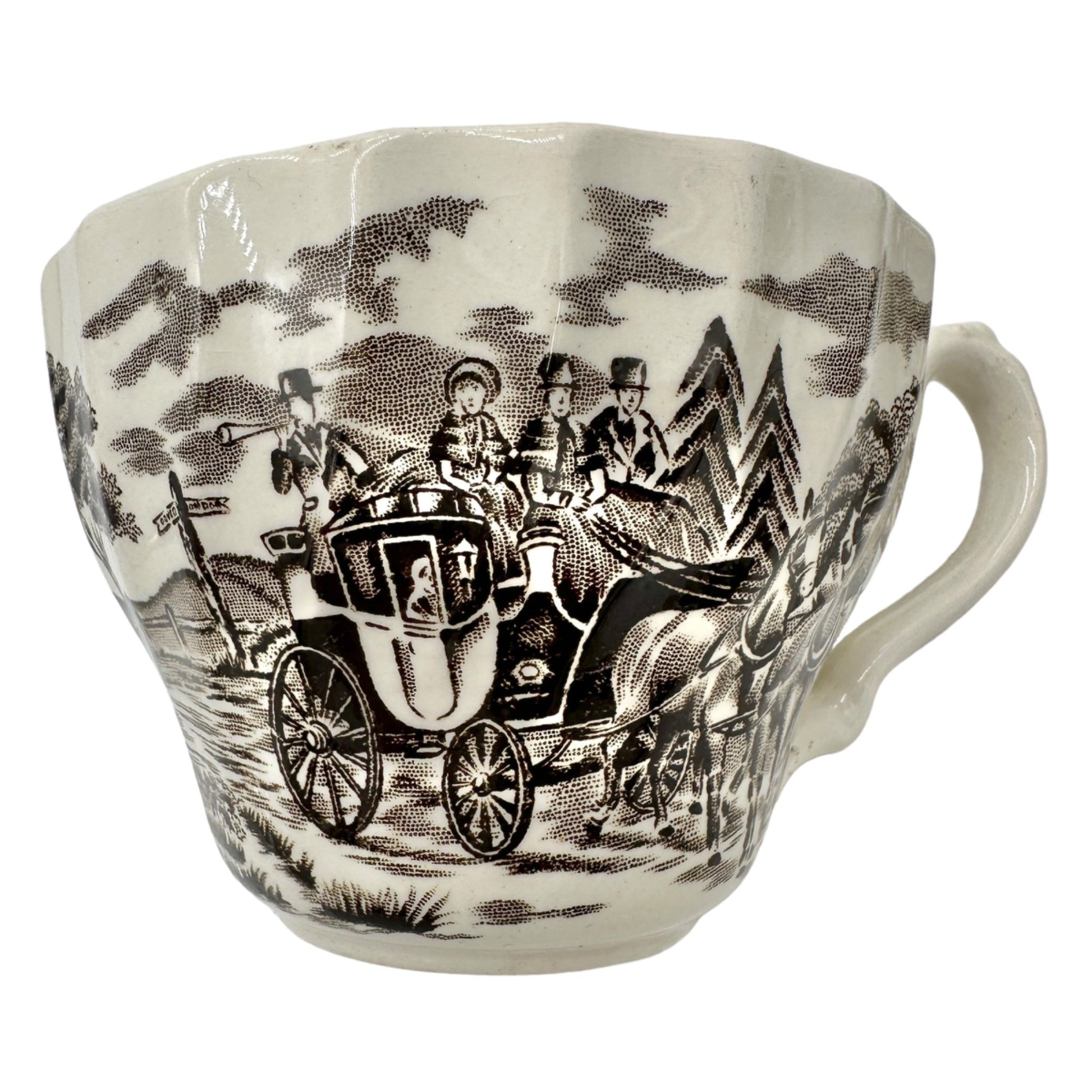 This Staffordshire Ironstone cup and saucer set features intricate countryside scenes. Made in England, the set exemplifies fine craftsmanship and timeless design.