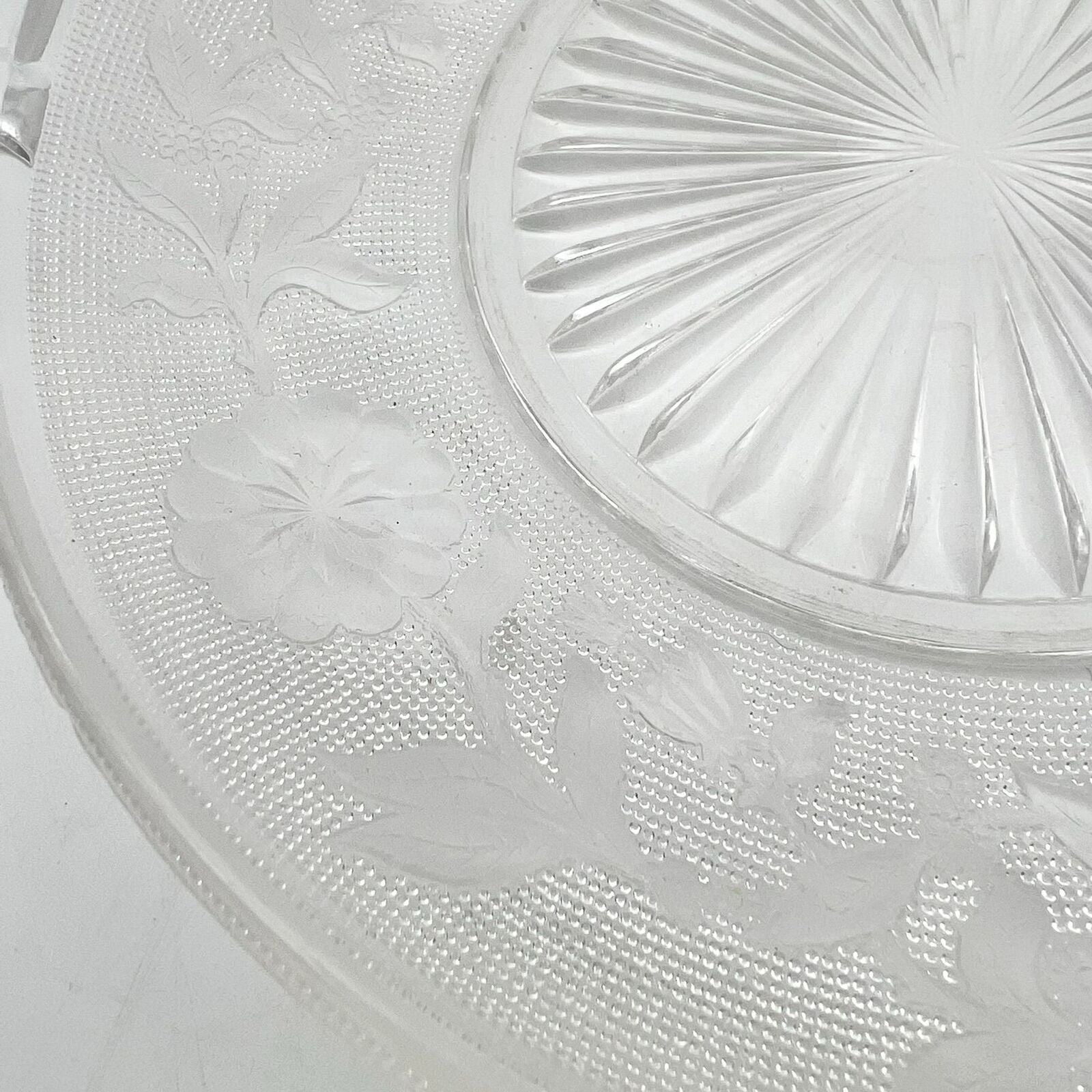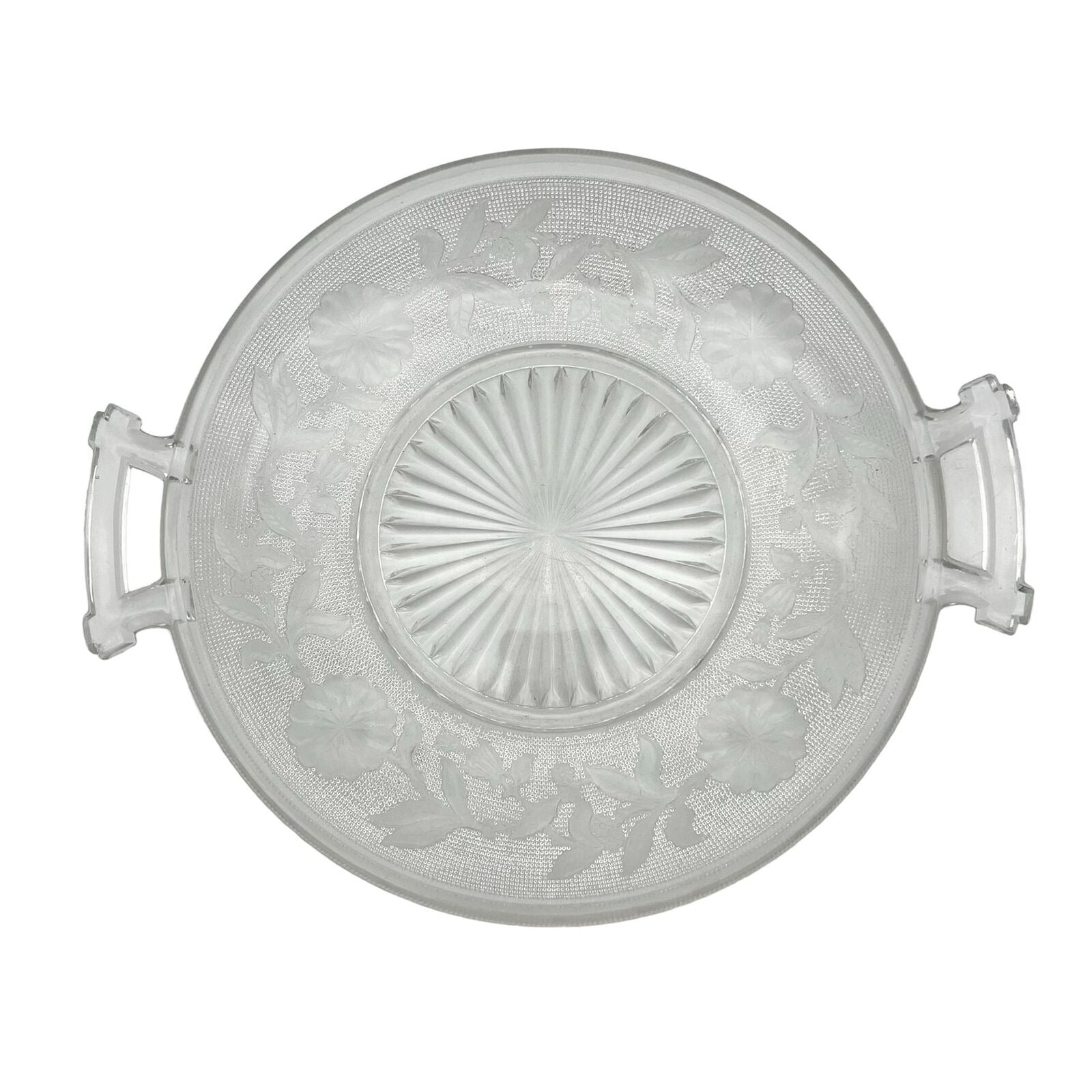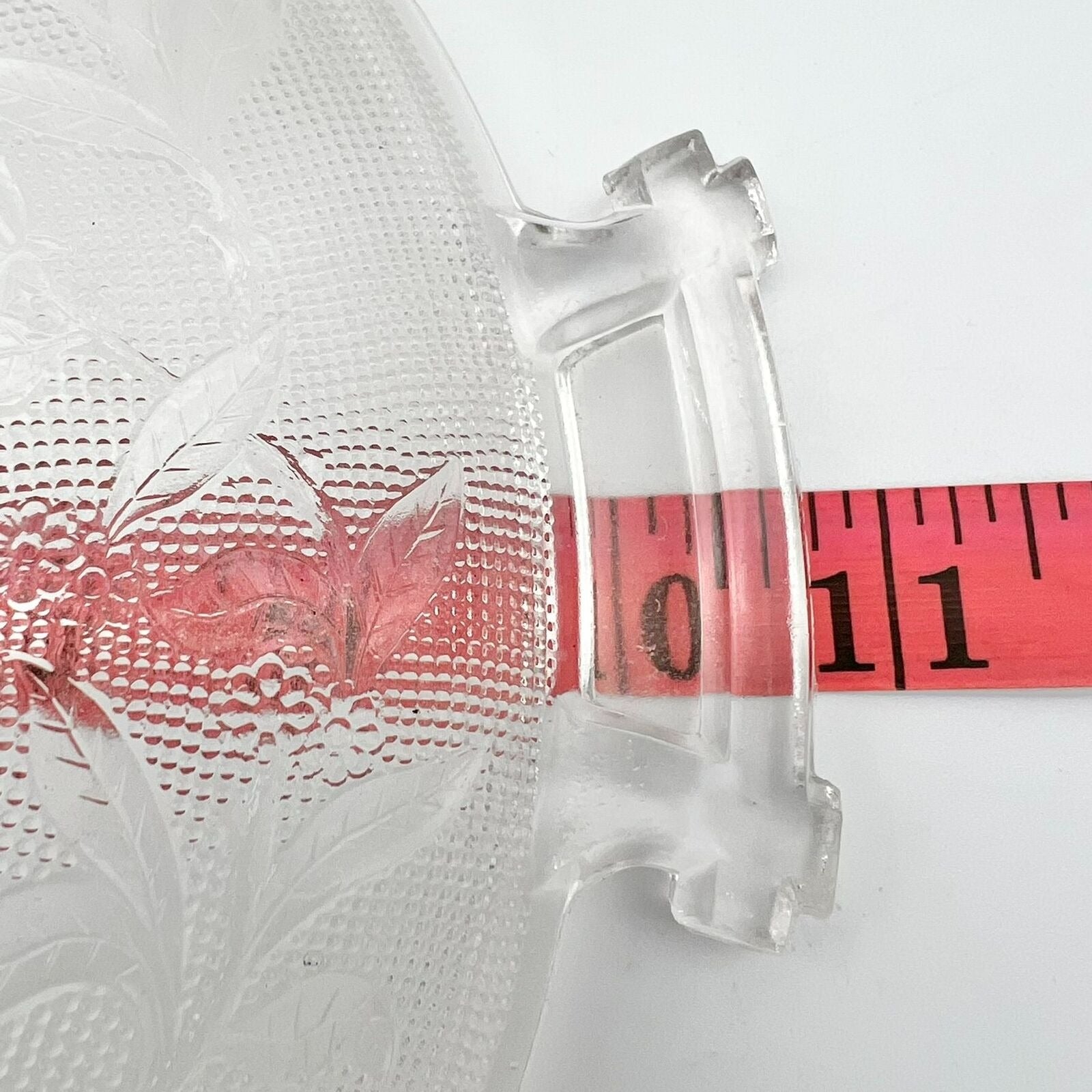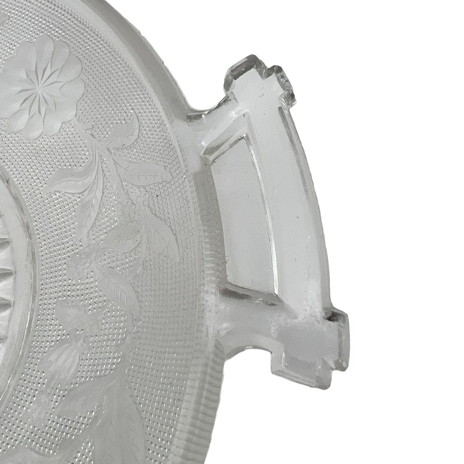 Serving Dish 9 inch Clear Glass Etched Flowers 2 Handles