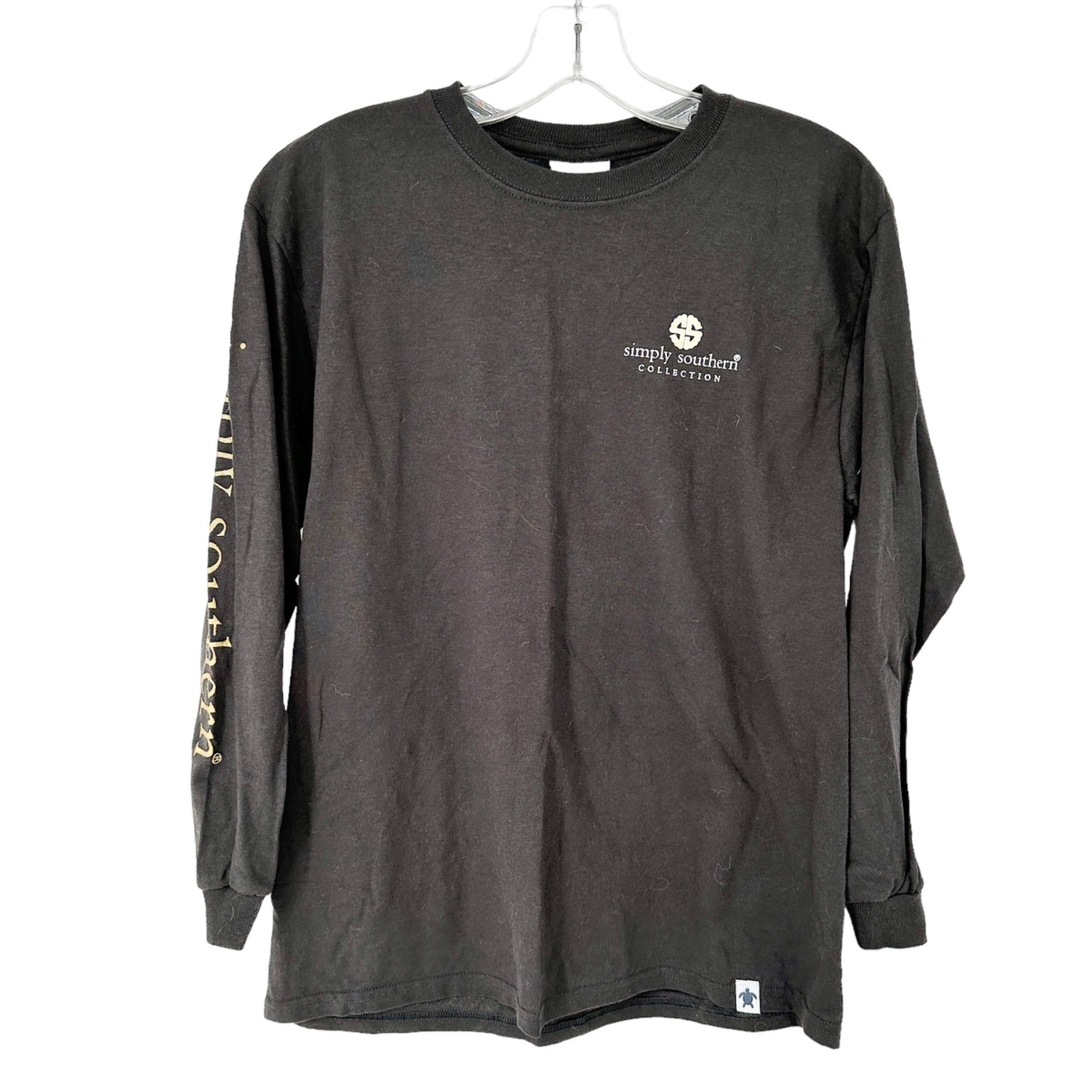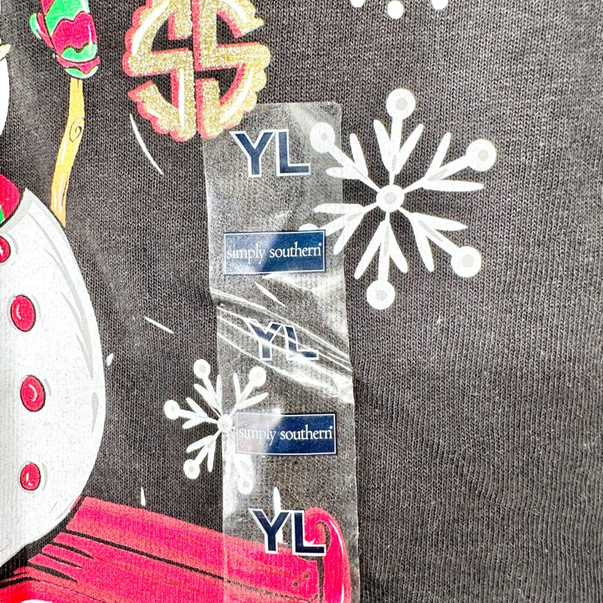 Simply Southern TShirt Youth Large Black Christmas Snowman LS Crew Neck NWT