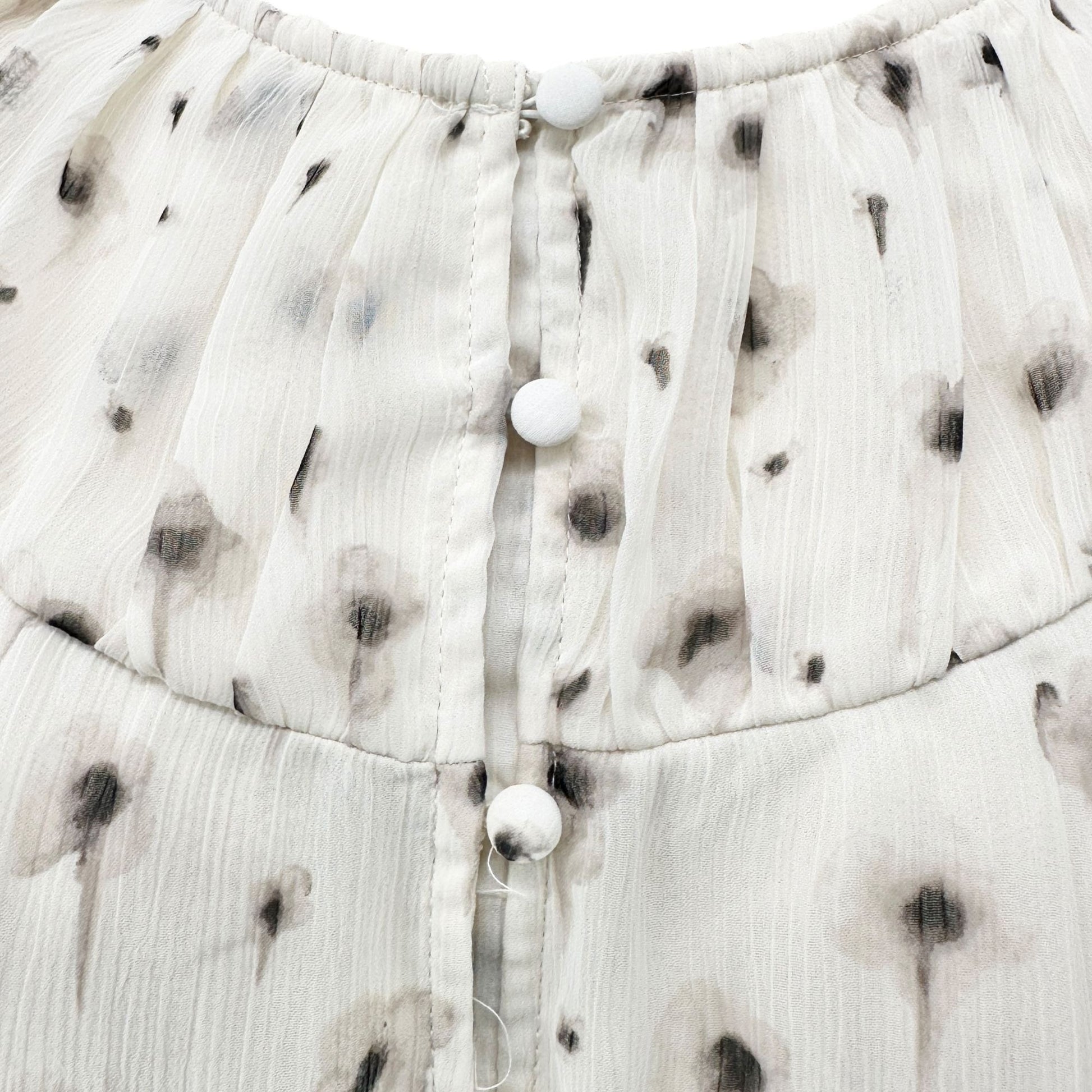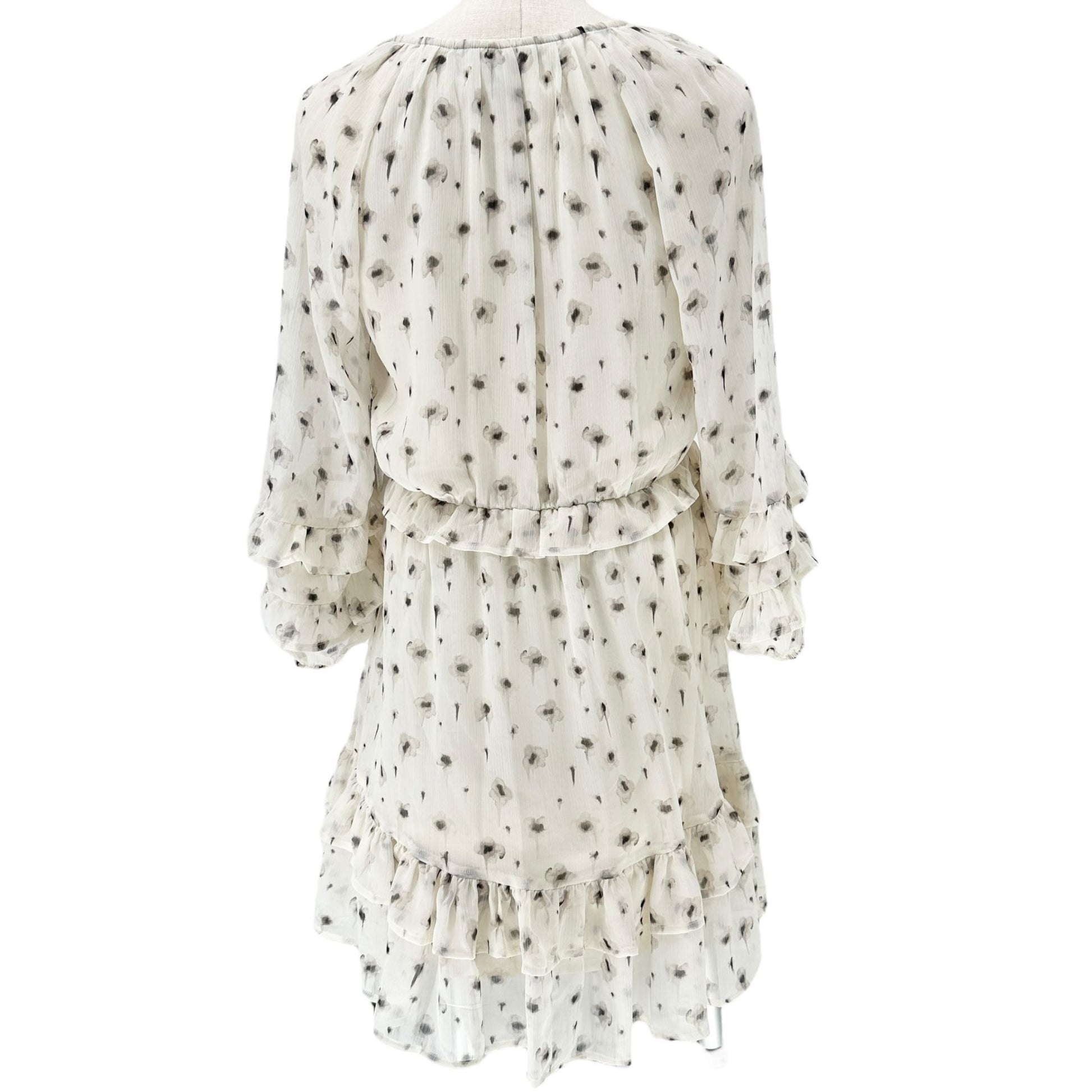 Simply Vera Vera Wang Dress Womens M White Beige Floral Print Ruffled Chiffon LS