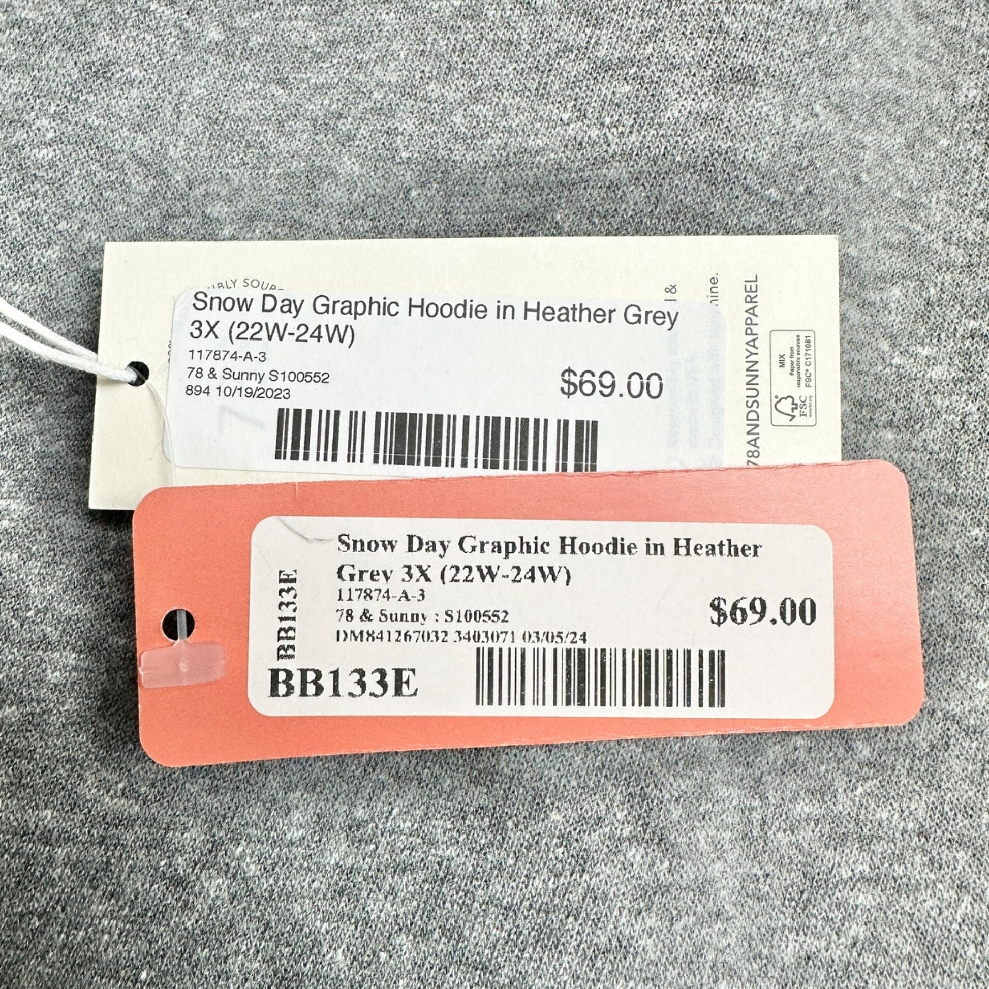 Snow Day Graphic Heather Grey Hoodie 3X 22W-24W By 78&Sunny Cozy Fleece Lining