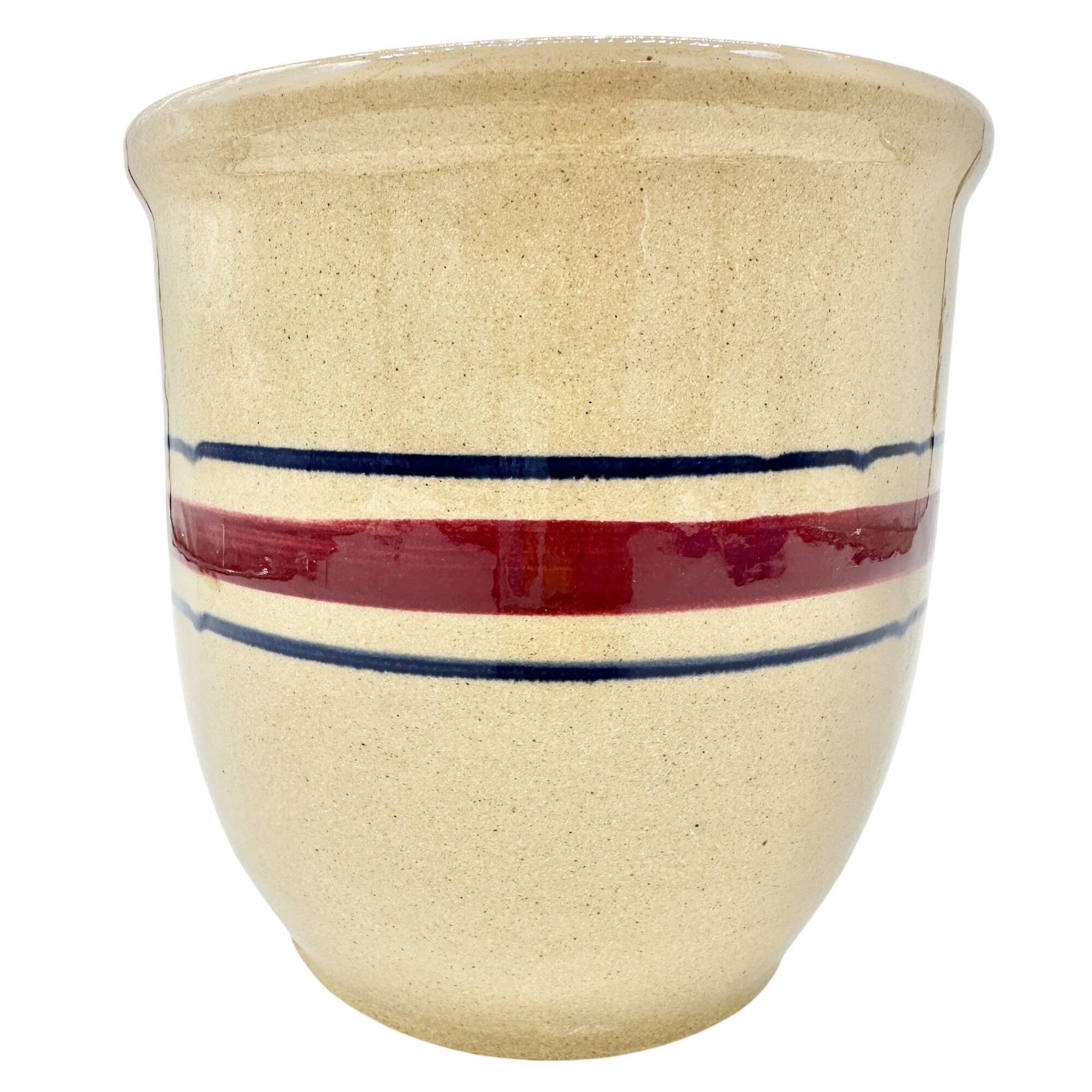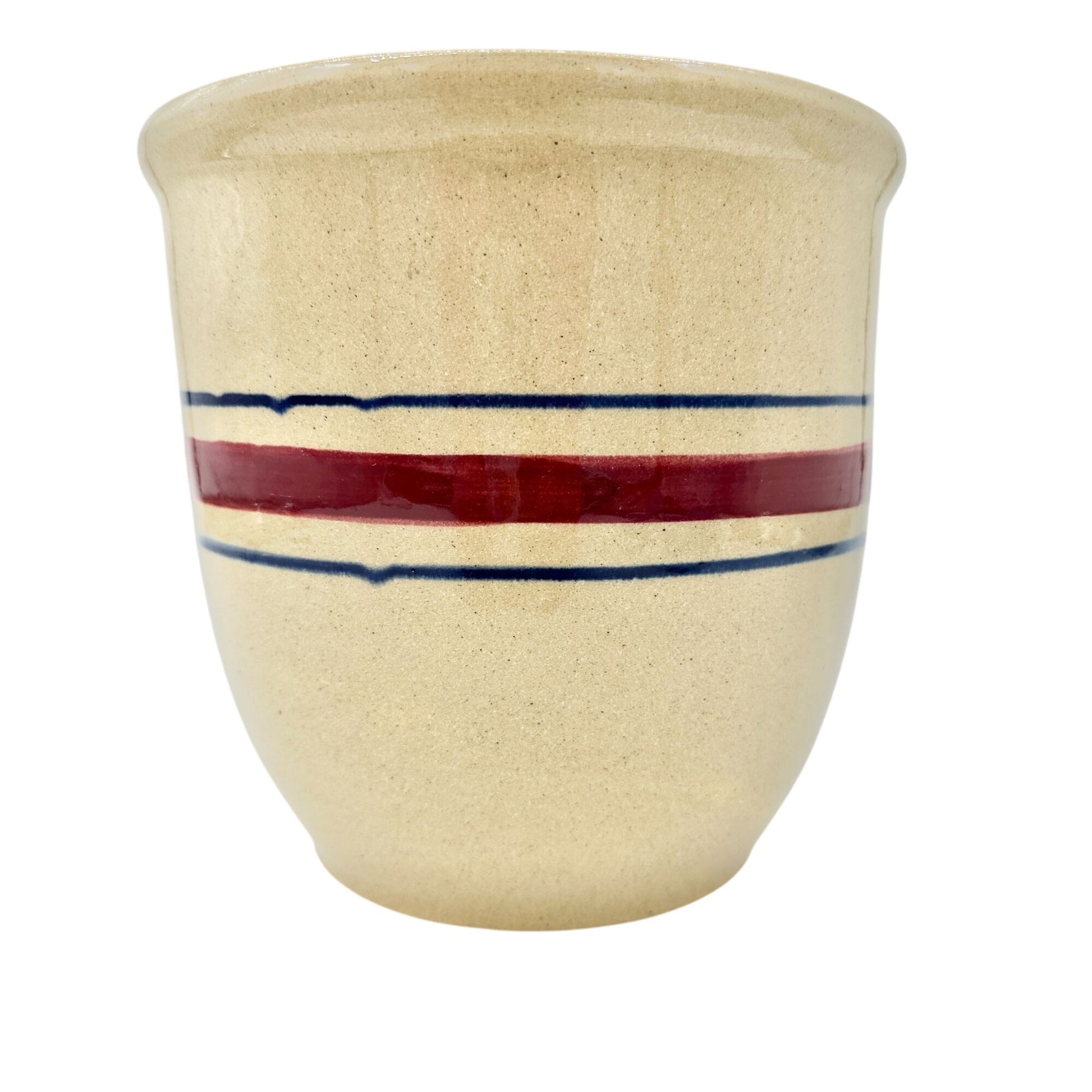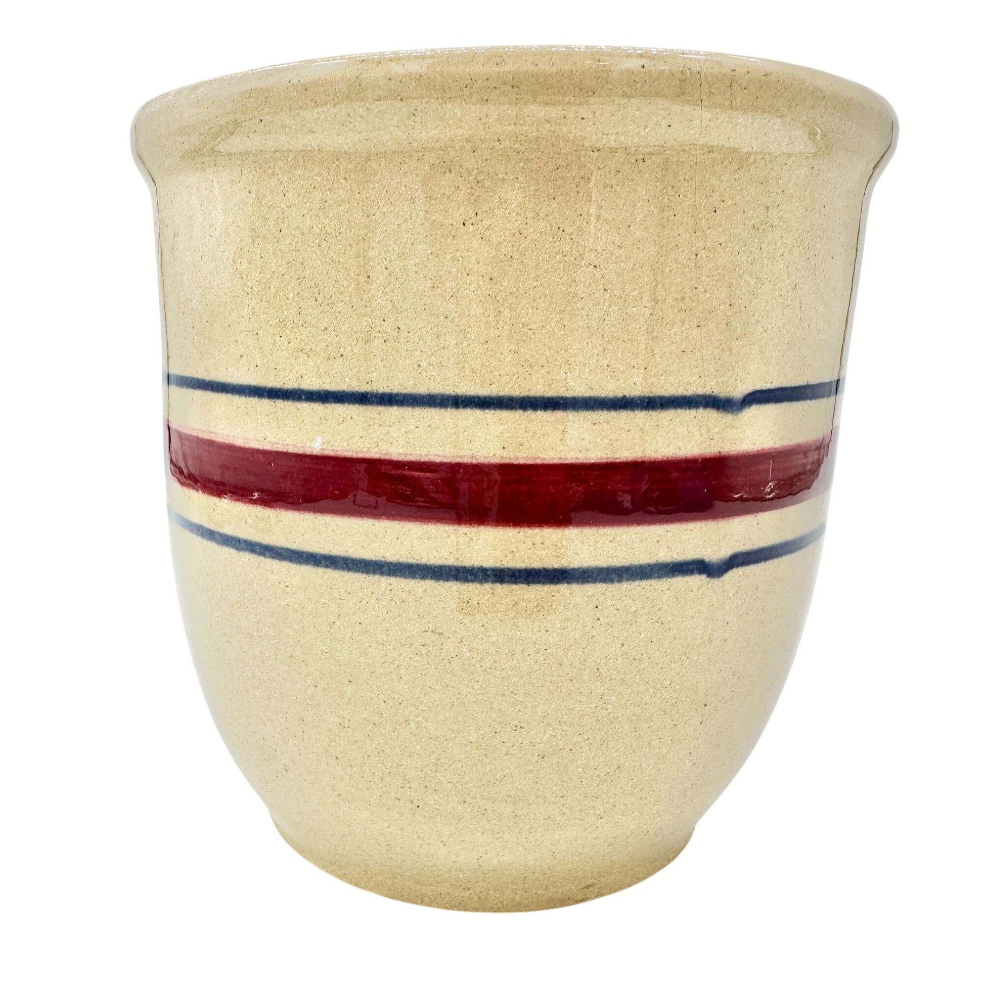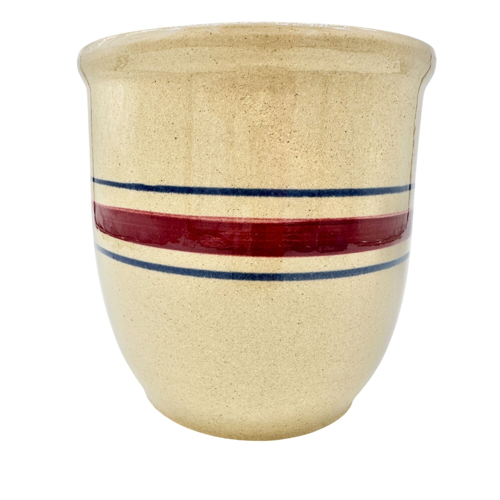 Stoneware Crock With Red and Blue Stripes R.R.P. Co. Roseville USA 6.5 in Tall