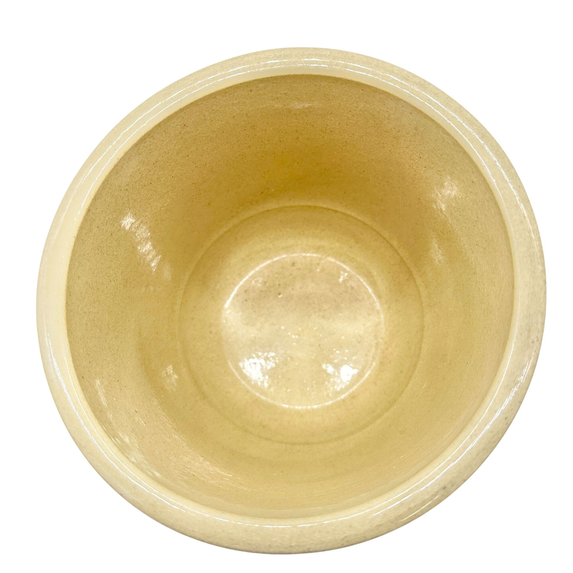 Step into the charm of yesteryear with this R.R.P. Co. Roseville crock. Its earthy tones and classic stripes echo simple, comforting traditions. A piece that effortlessly bridges past and present, perfect for adding vintage allure to your kitchen or collection.