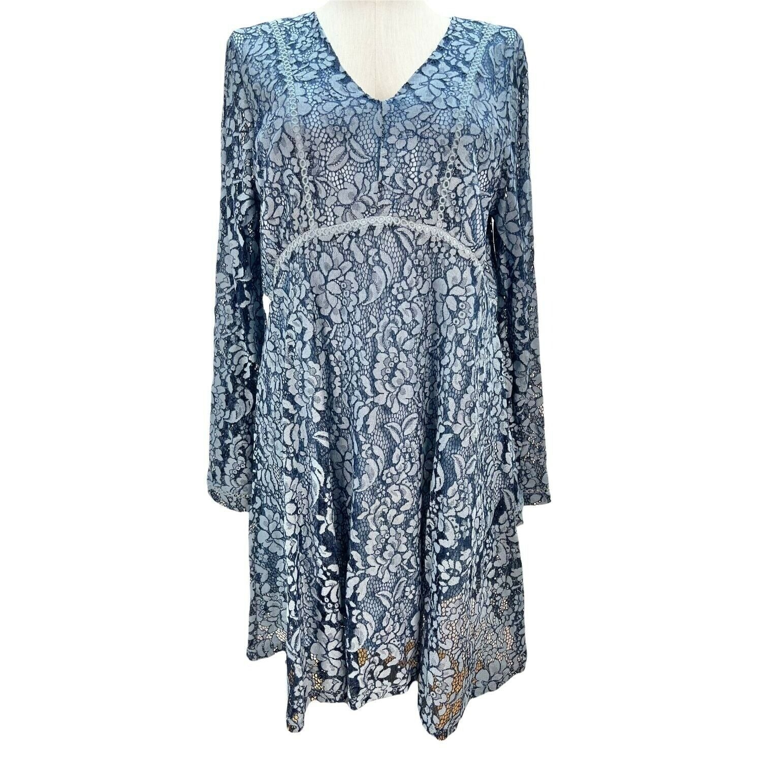 Suzanne Betro Women's 2X Blue Lacy Long Sleeve Handkerchief Dress NWT