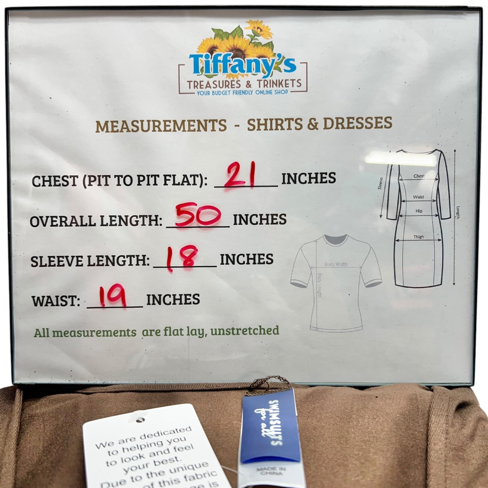 Measurements: chest = 21 in, overall length = 50 in, sleeve length = 18 in, waist = 19 in.