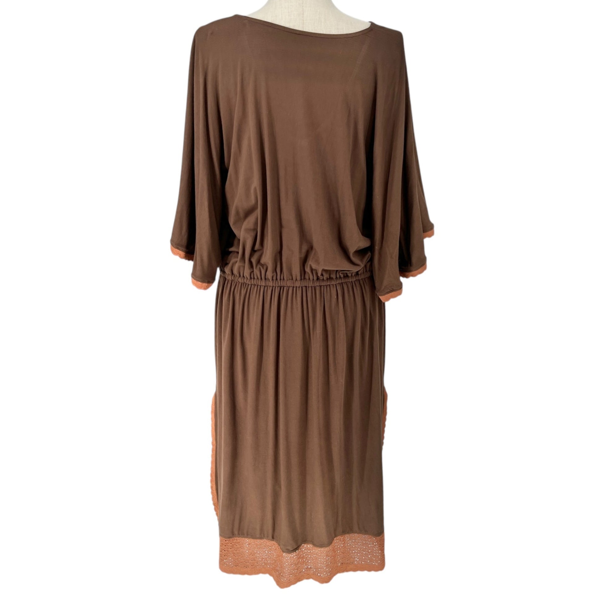 Swimsuits For All Cover-Up Dress 18/20 Brown Drawstring Waist Lace Hem Side Slit