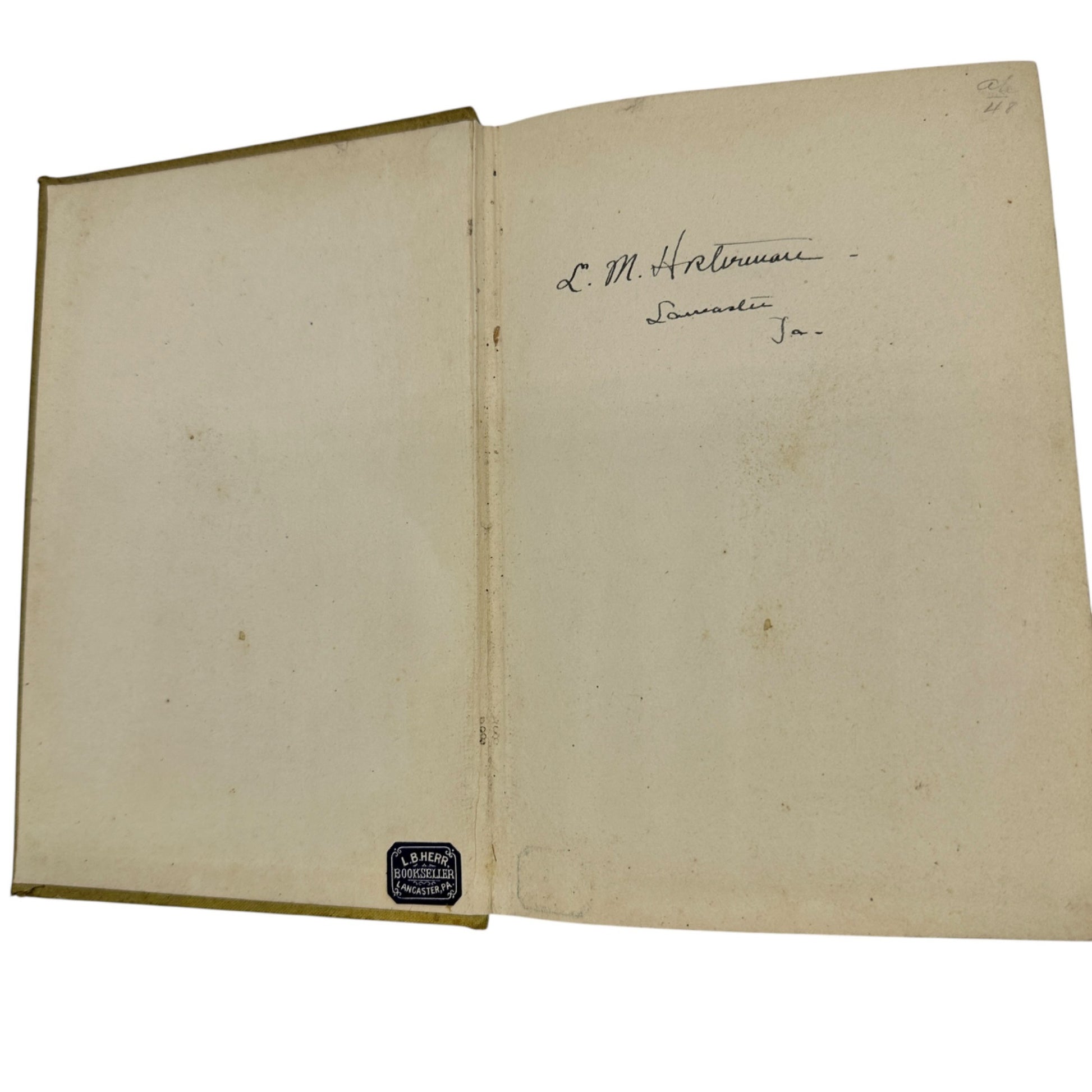 Cover shows wear with scuffs and fading, adding to its vintage charm. Inside pages are intact with handwritten name on the front page.