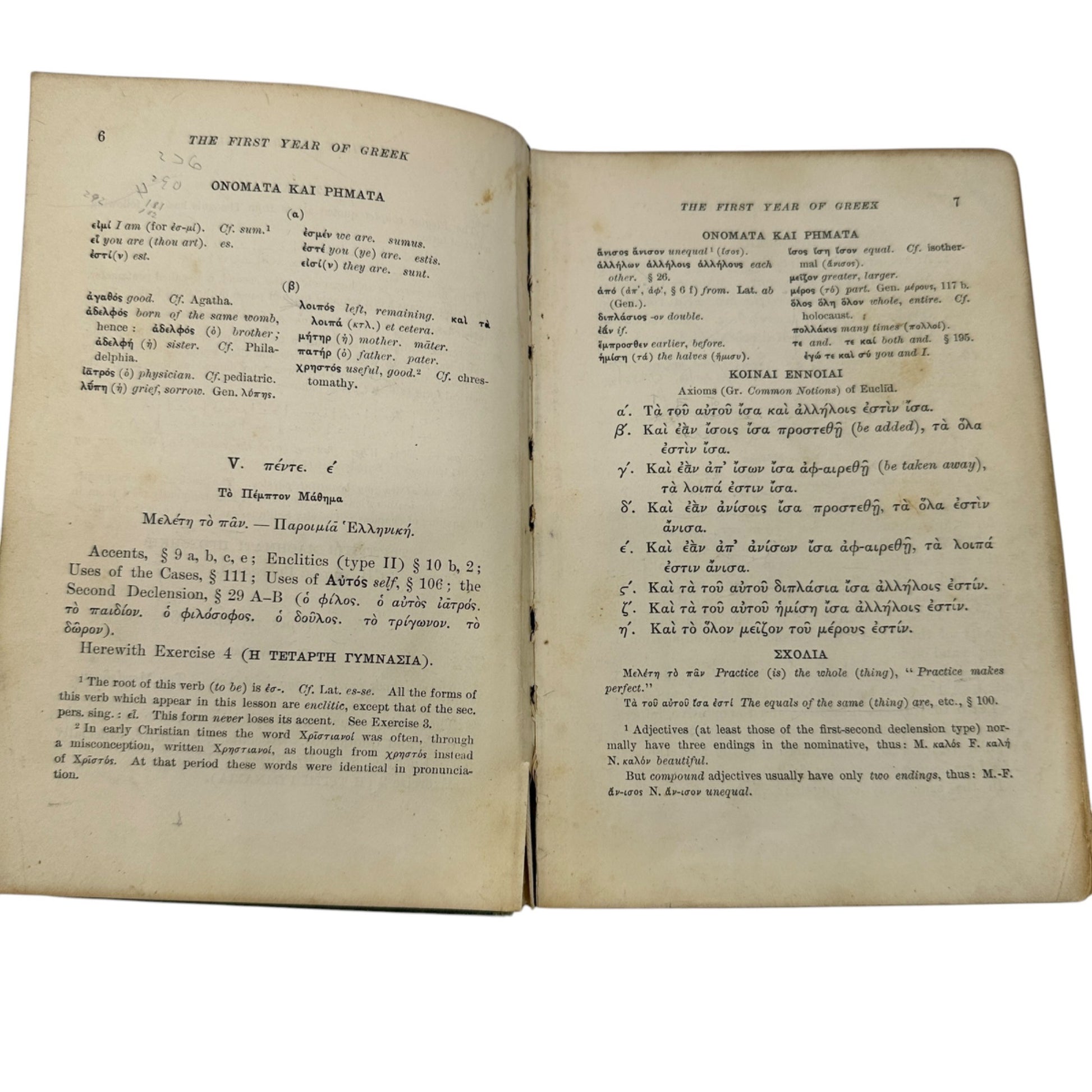 The First Year of Greek by James Turney Allen PhD 1921 Hardcover Book Antique