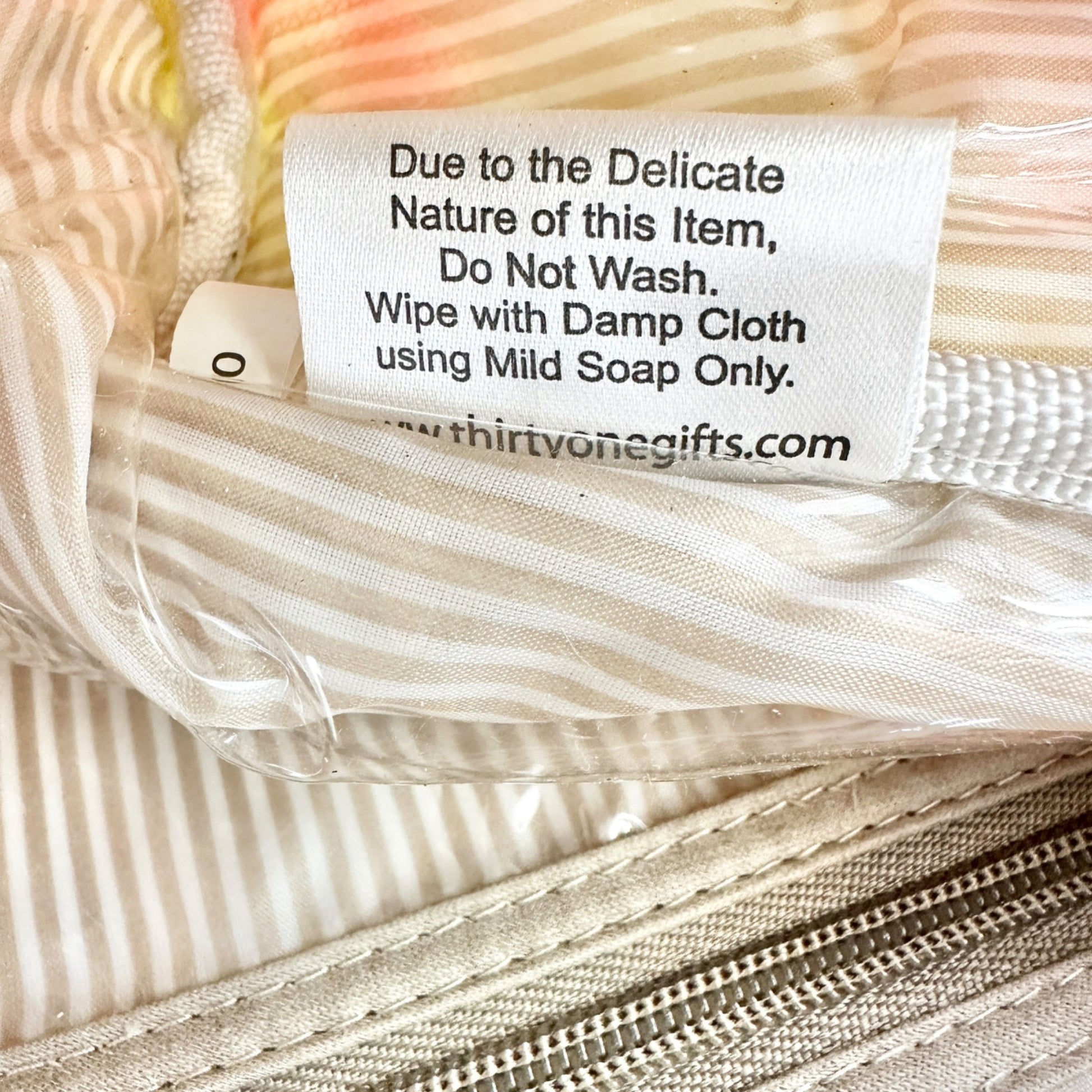 This charming Thirty-One floral-patterned cosmetic travel bag brings a splash of whimsy to your travel. Spacious and lined with protective plastic, it keeps your belongings organized and safe from spills while radiating a cheerful vibe. Whether carrying essentials or treasures, it's a delightful companion for those on-the-go moments.