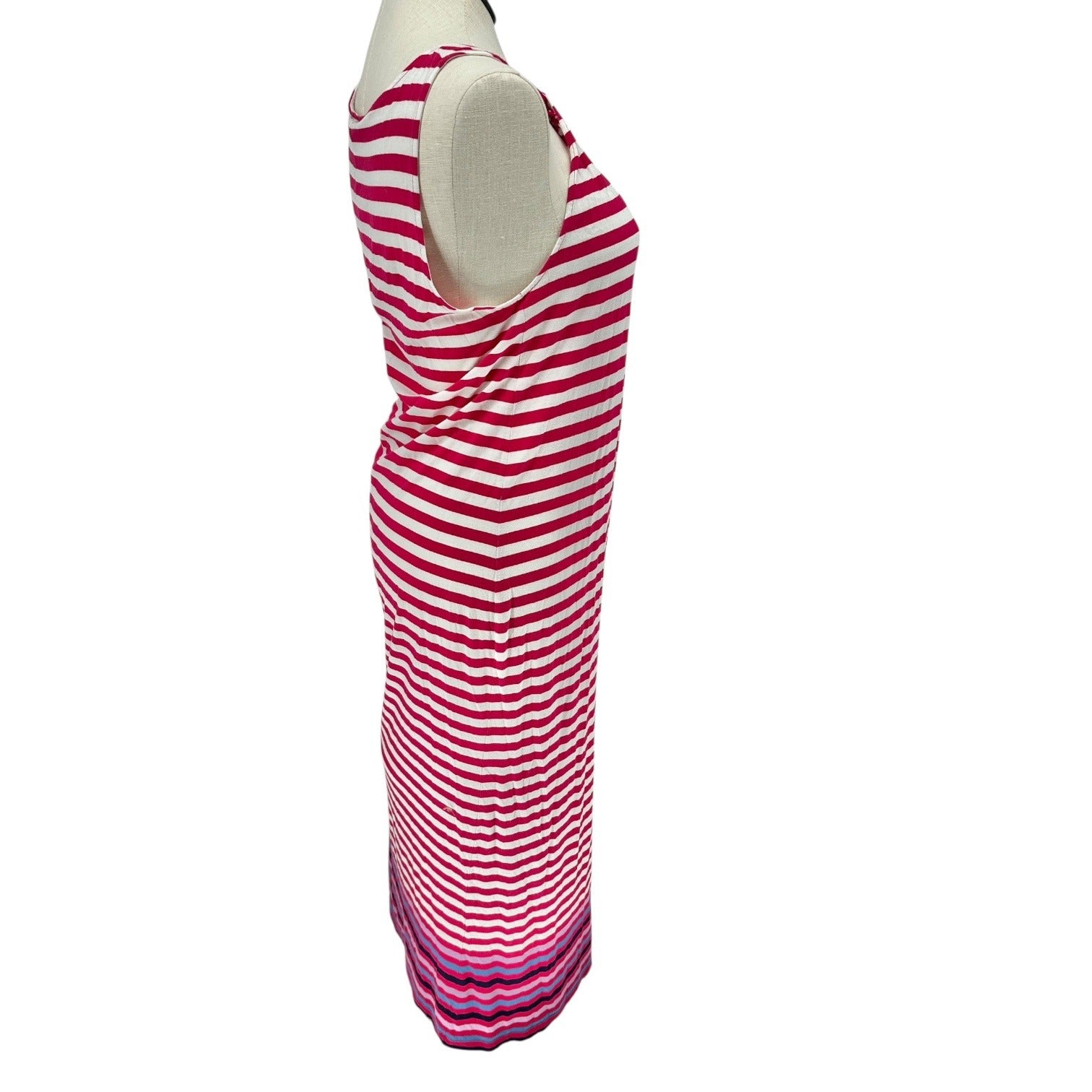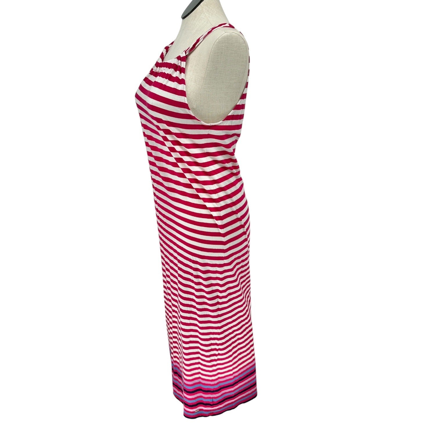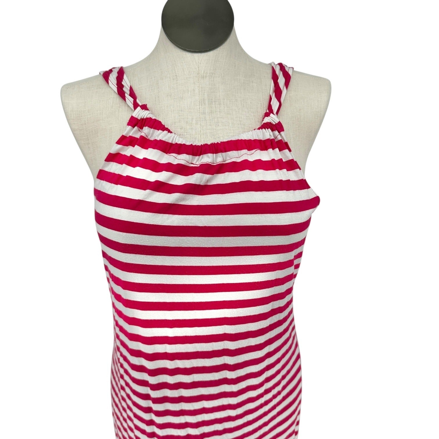 Tommy Hilfiger Halter Maxi Dress Womens L Pink White Striped Cotton Modal Blend