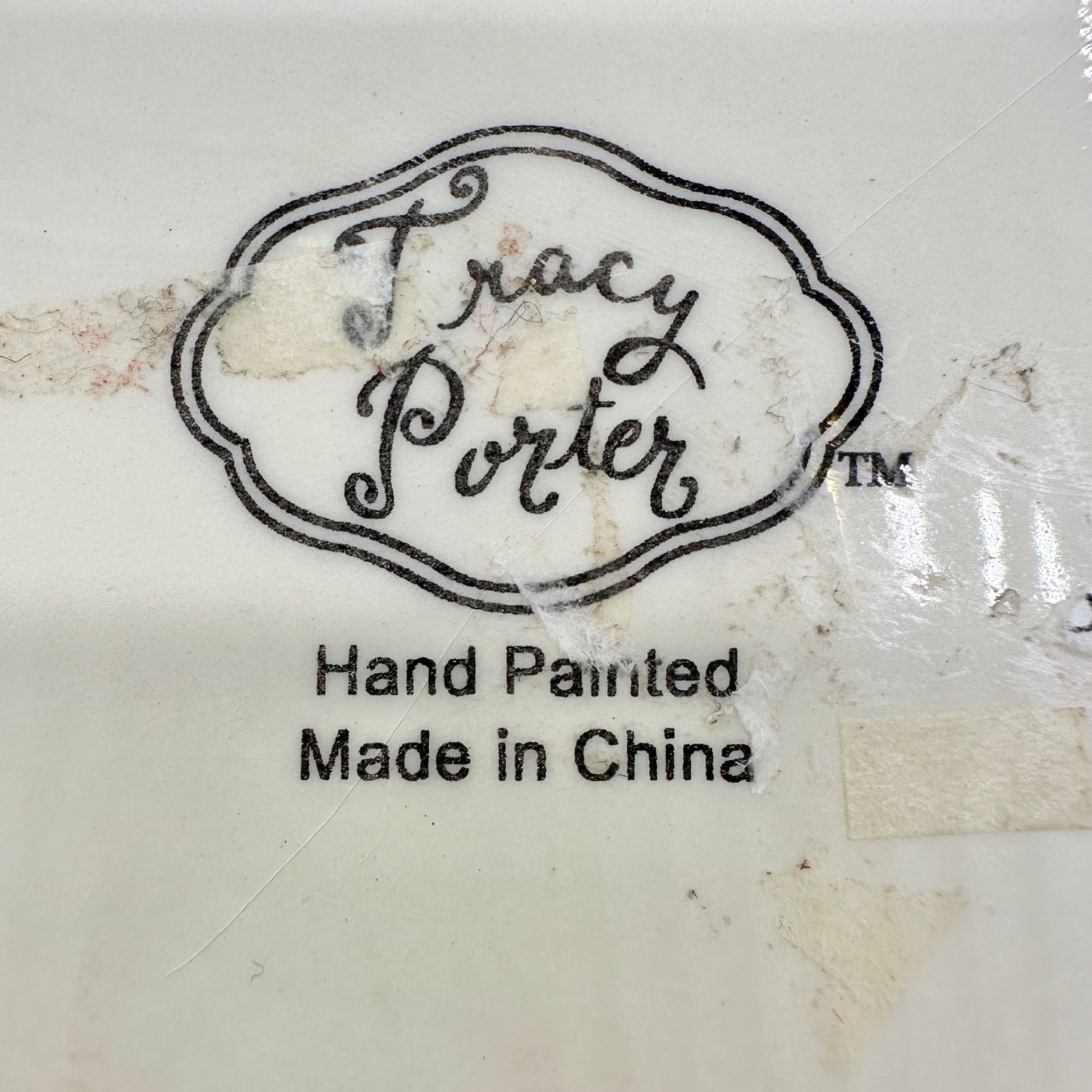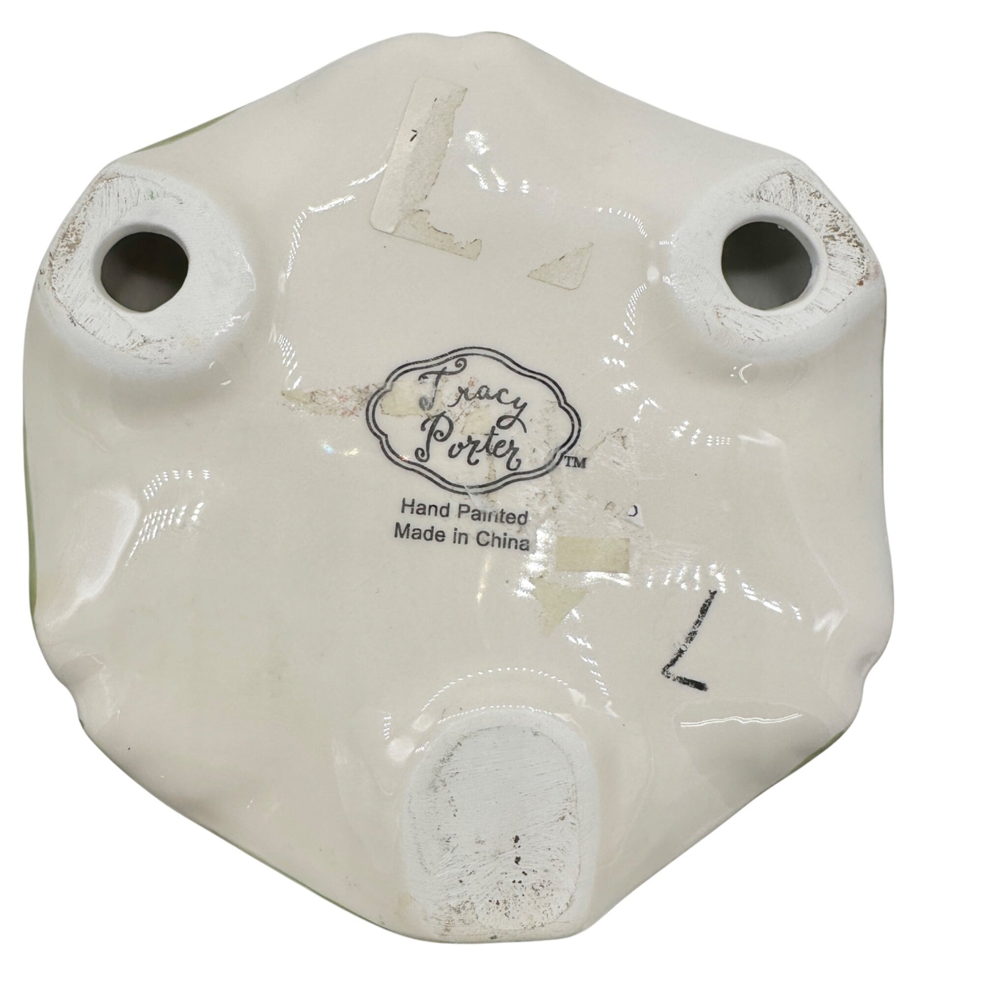 Tracy Porter Hand Painted Holiday Candle Holder Holly and Snowflake 9 inch Tall