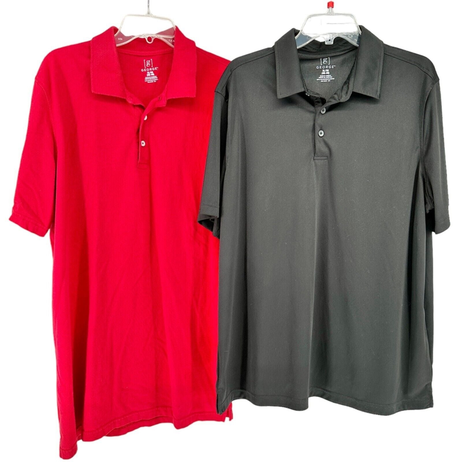 TWO George Mens XL 46-48 Polo Style Shirts 1 Red 1 Black Short Sleeve