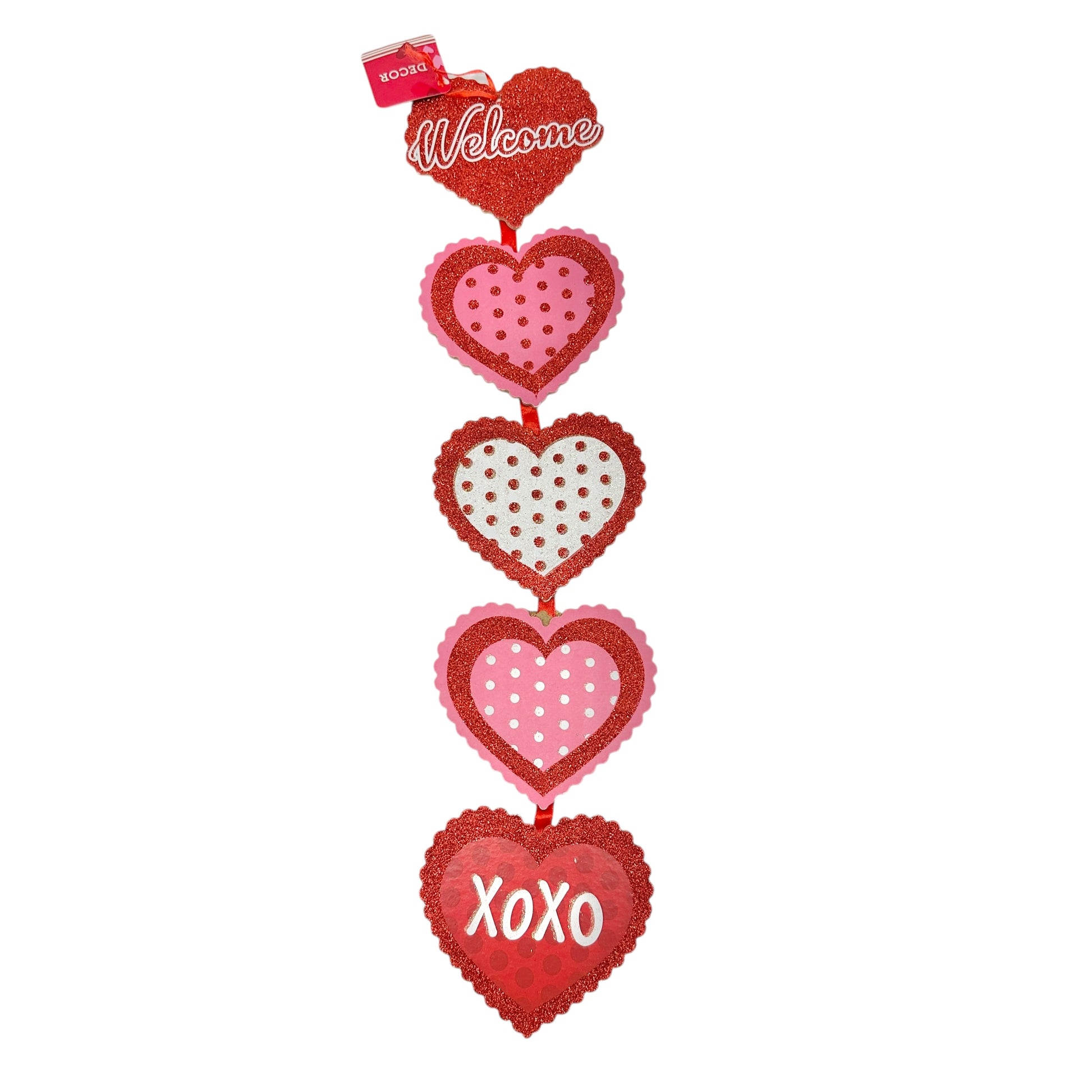 Valentines Day Door Hanger Sign Welcome with 5 Hearts 22.5x4.5 inches
