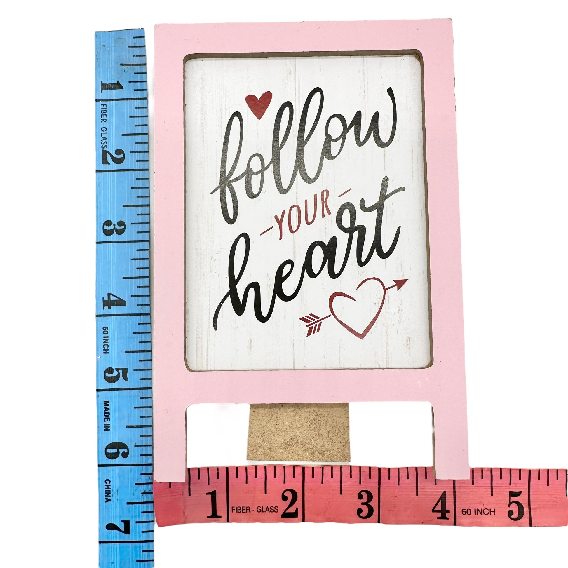 Valentines Day Tabletop Sign Follow Your Heart Pink White 6x4 inches