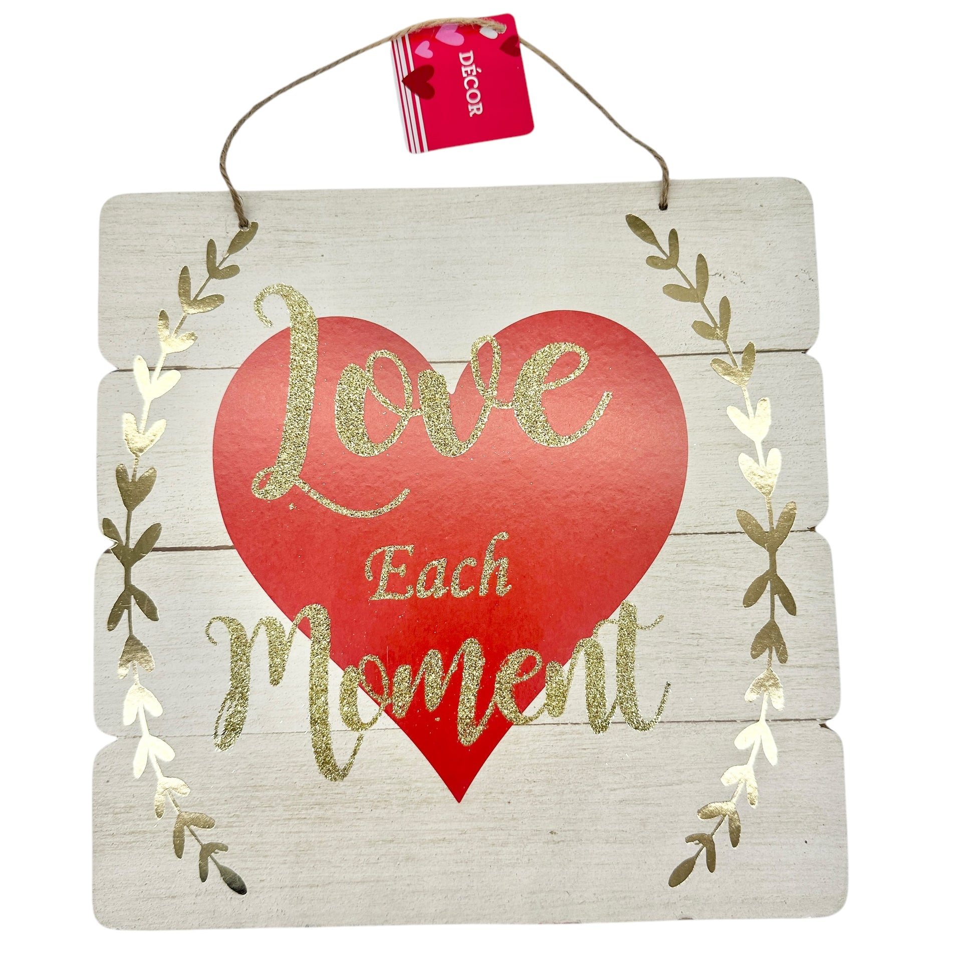 Valentines Day Wall Hanging Sign Love Each Moment 10.5 x 10.5 Inches NWT