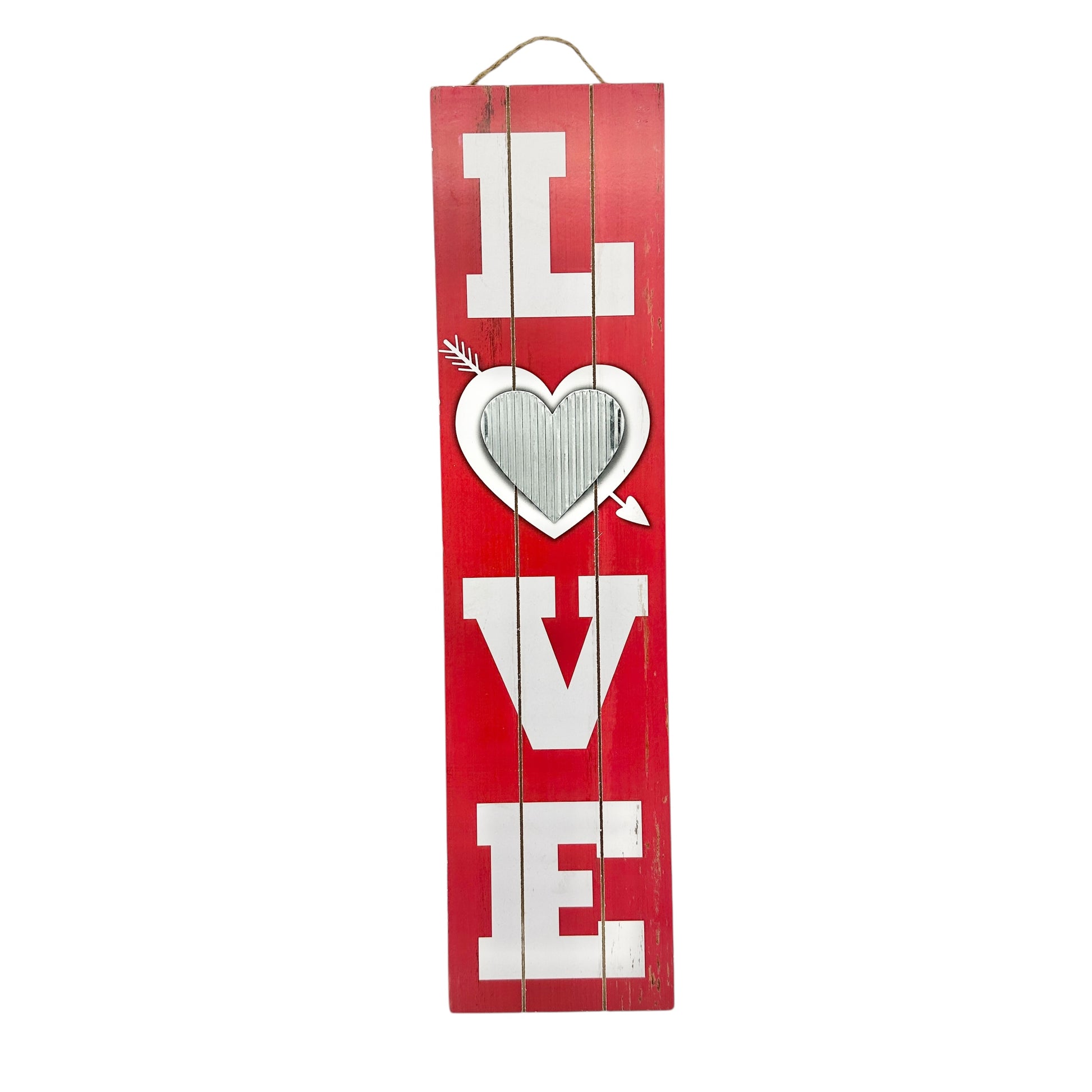 Valentines Day Wall Hanging Sign LOVE Red with White Letters 23.5 x 6 inches
