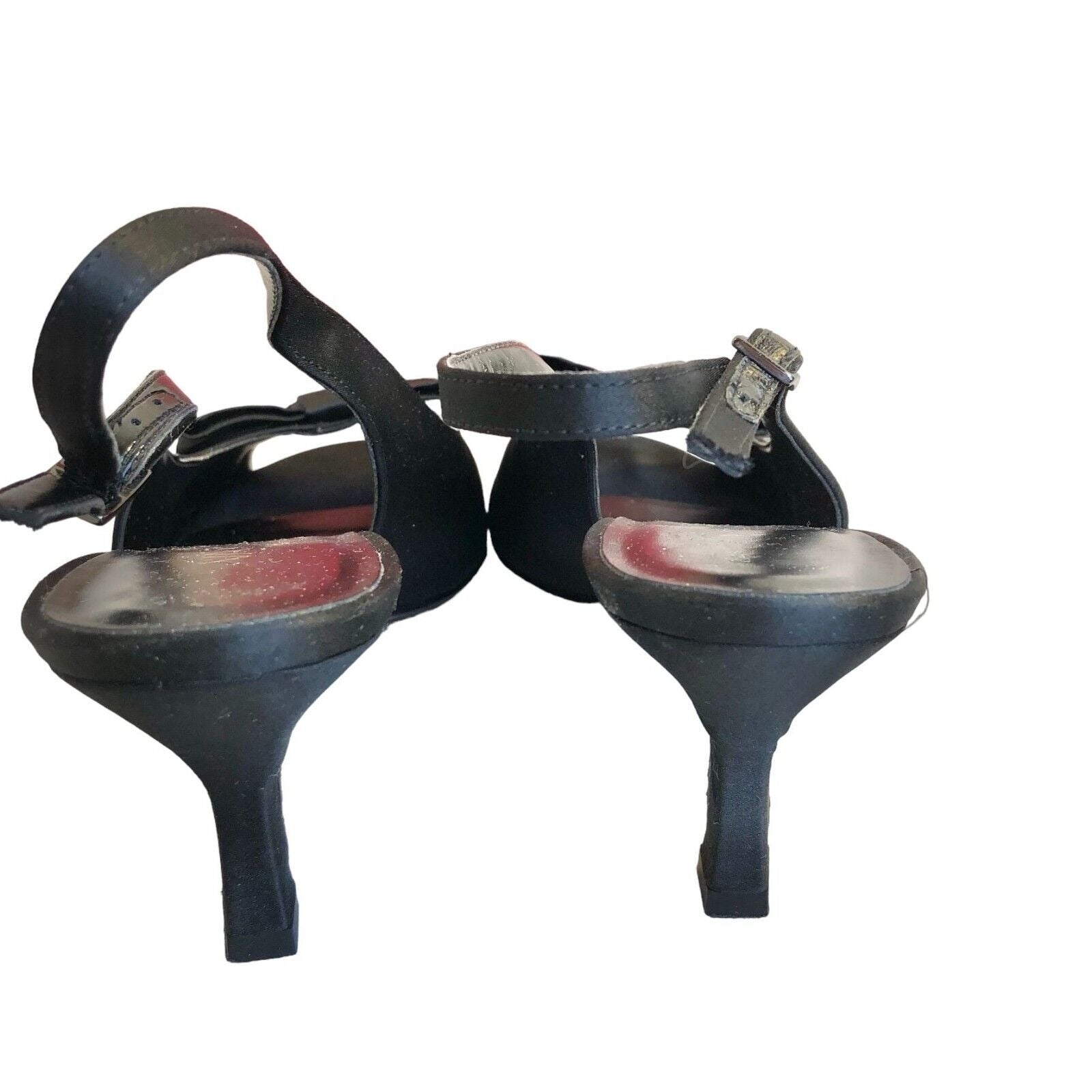 This gorgeous pair of black satin Vaneli slingback pumps are excellent used and perfect for dress or casual.