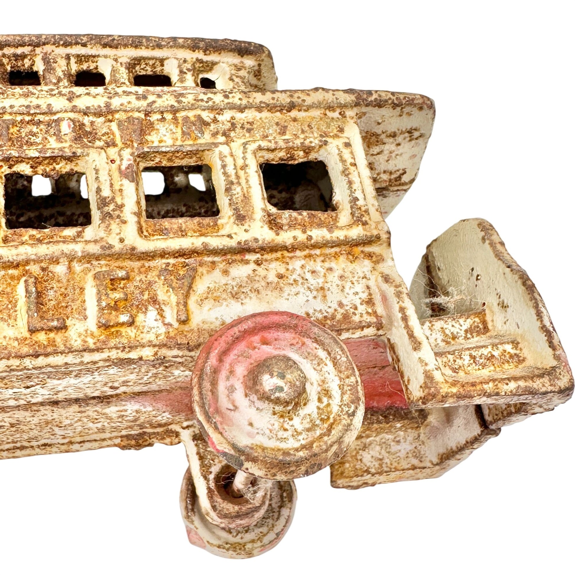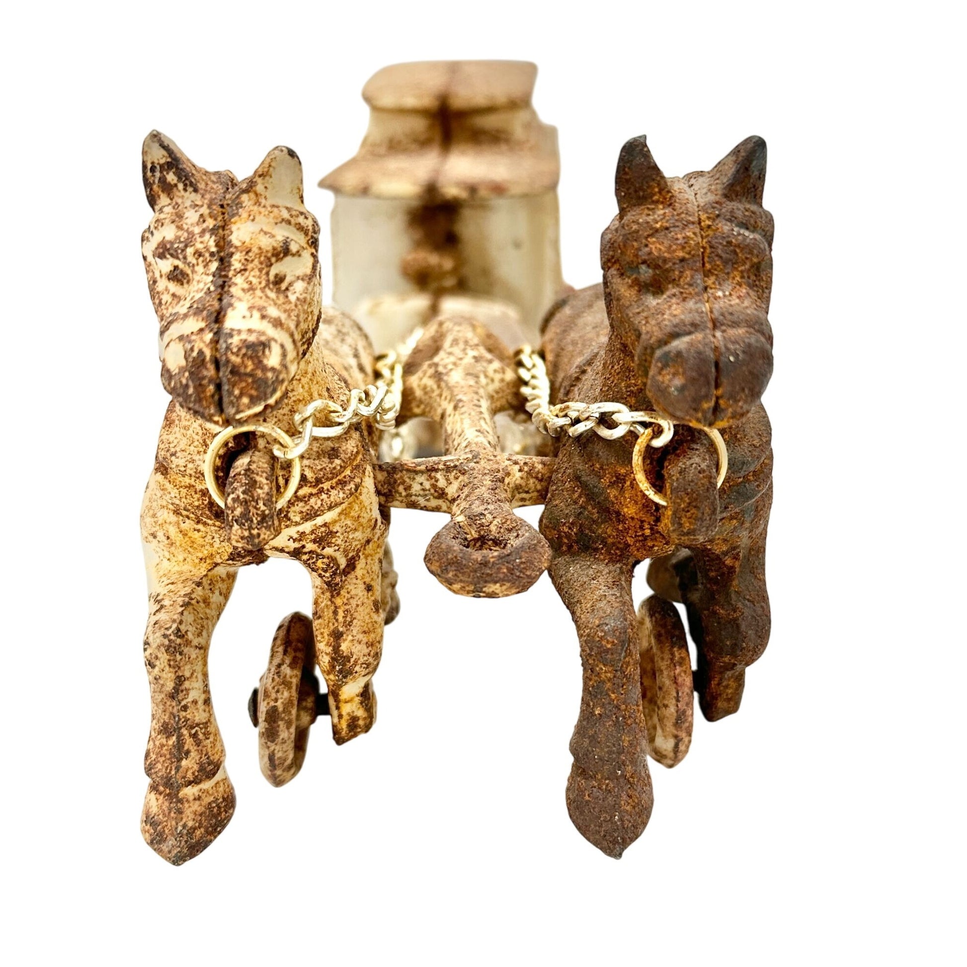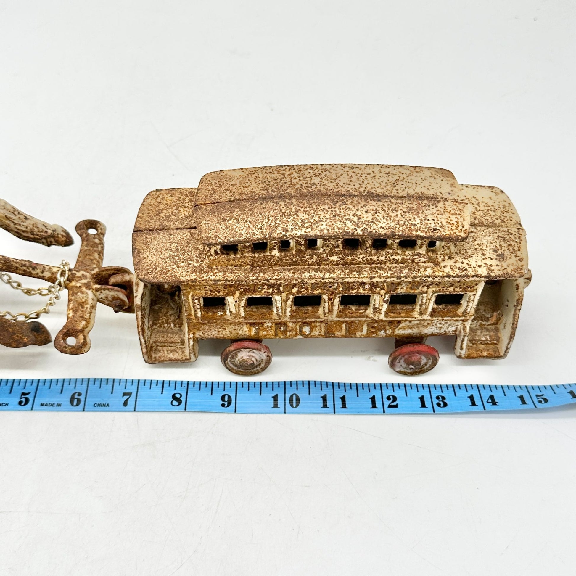 Vintage Cast Iron Horse Drawn Trolley Model 15in Long Rustic Antique Collectible