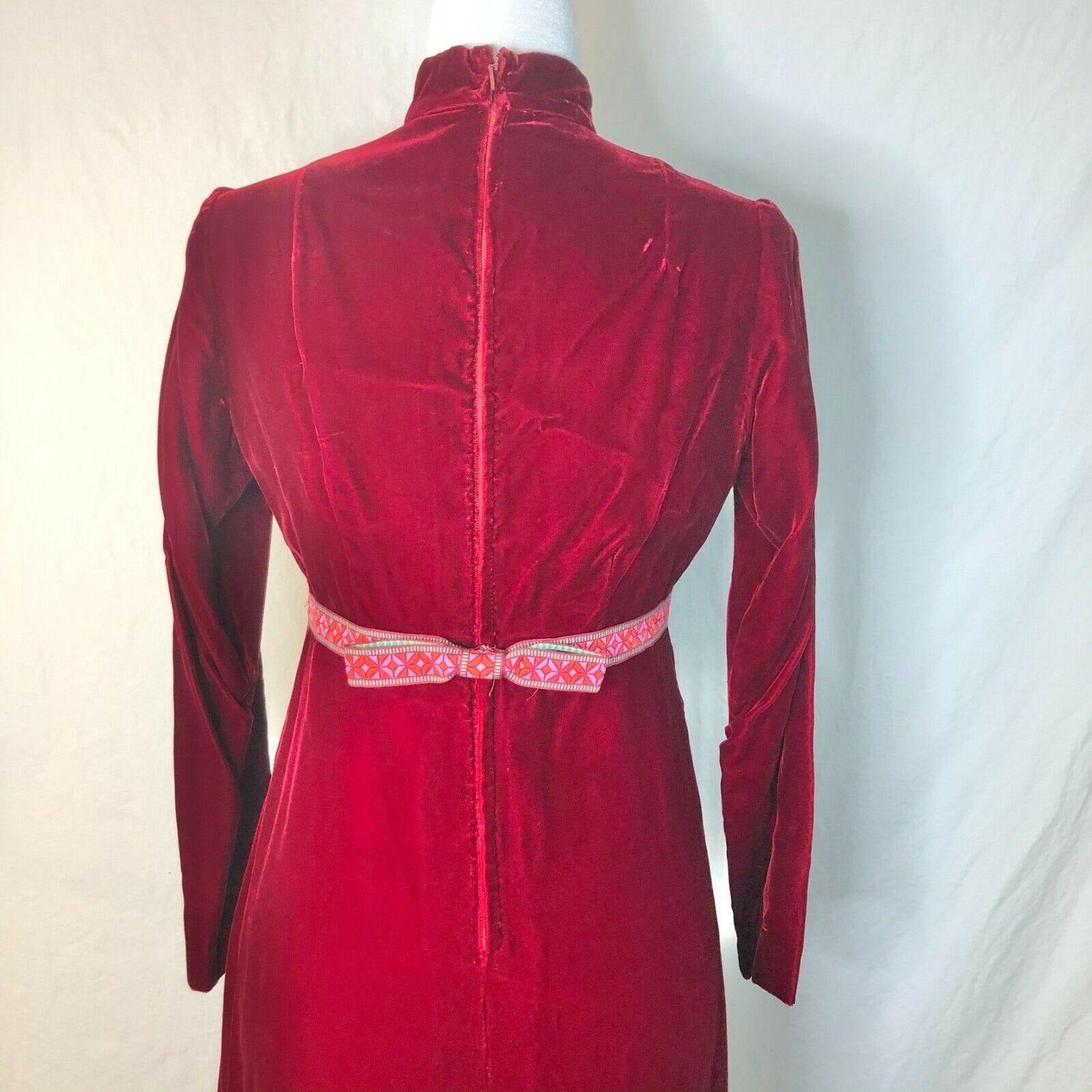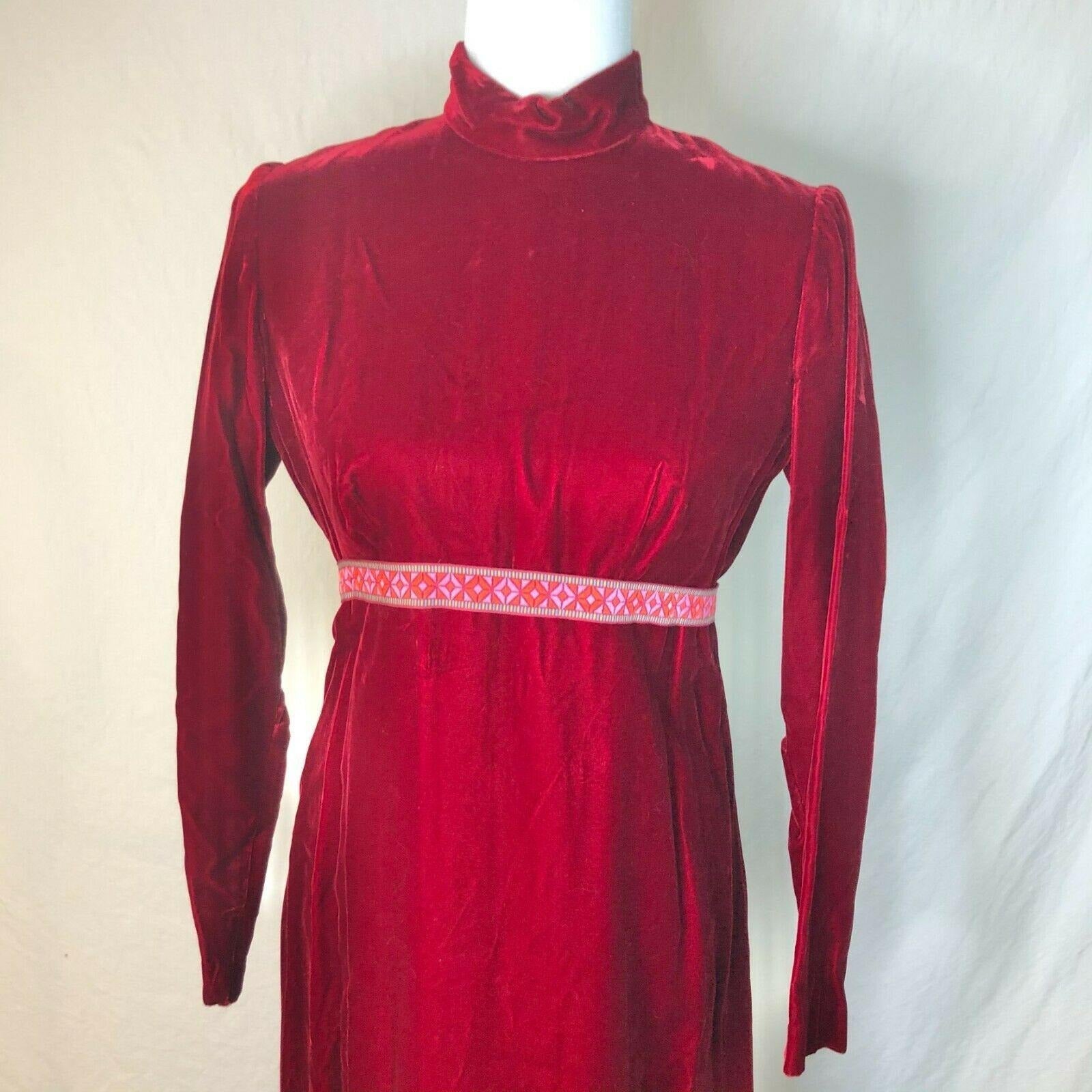 This gorgeous modest vintage handmade velvet dress is sure to wow with the mock neck, long sleeves and gorgeous empire waist! There is a back zipper, snap at waist and hook at top.