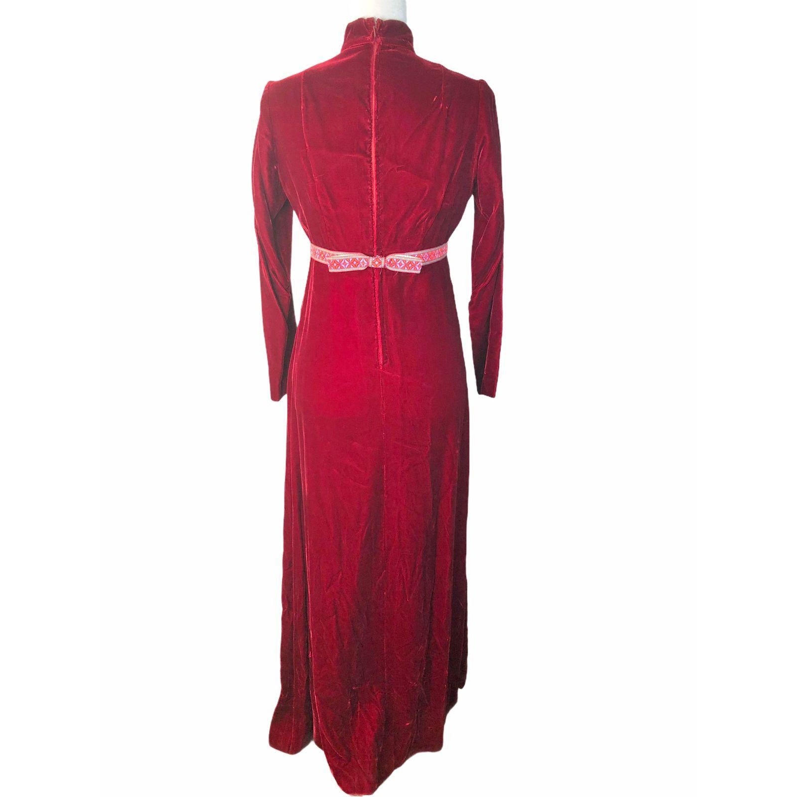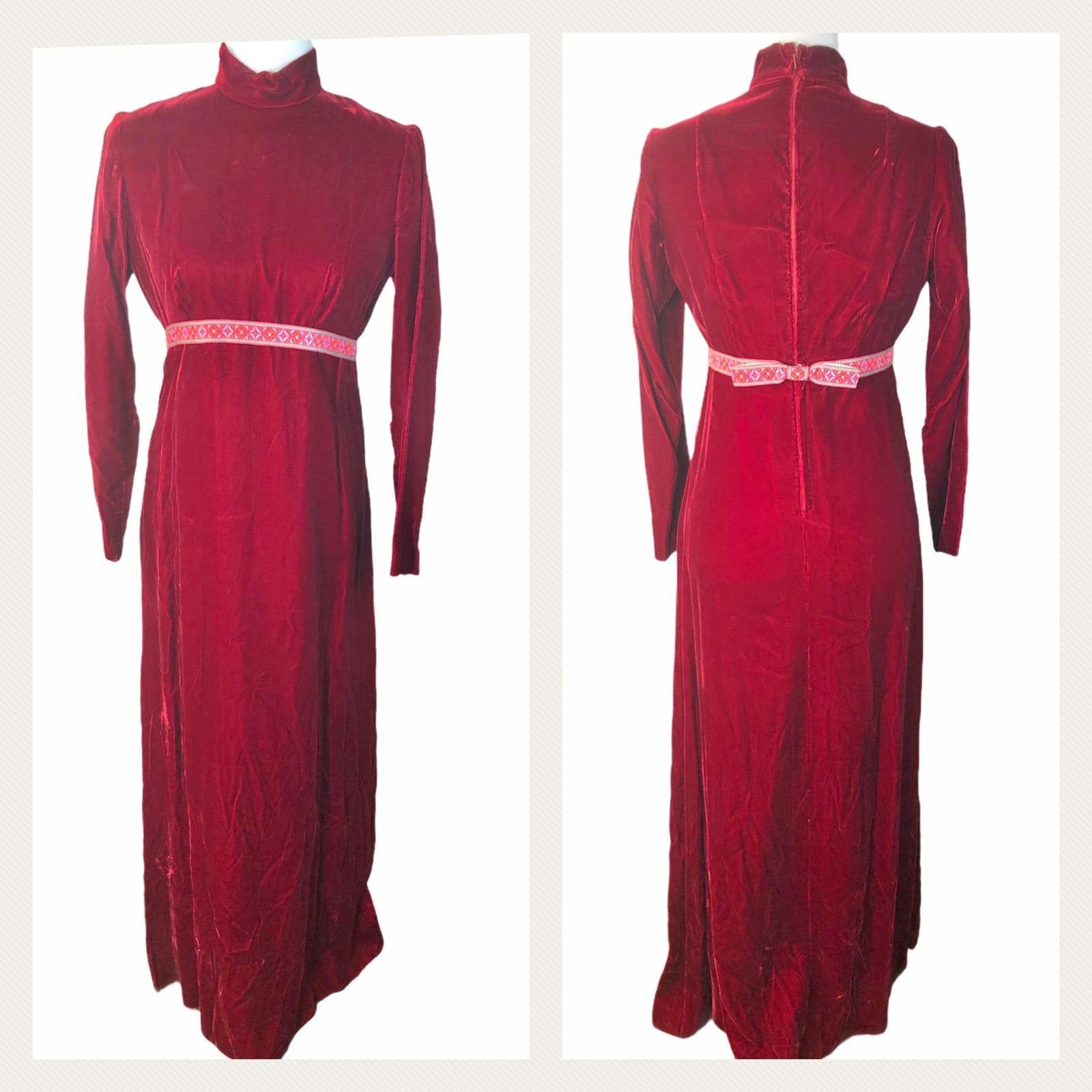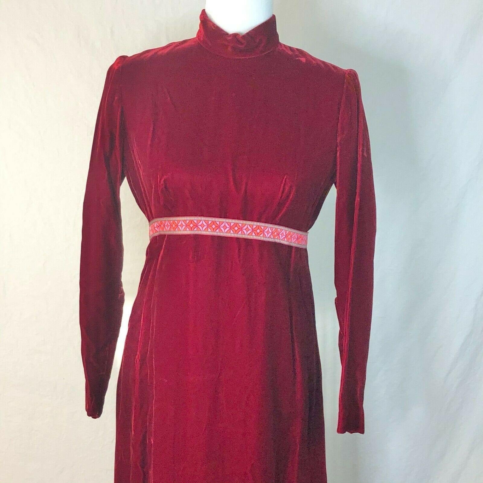 Vintage Long Velvet LS Maroon Empire Waist Dress Handmade Modest