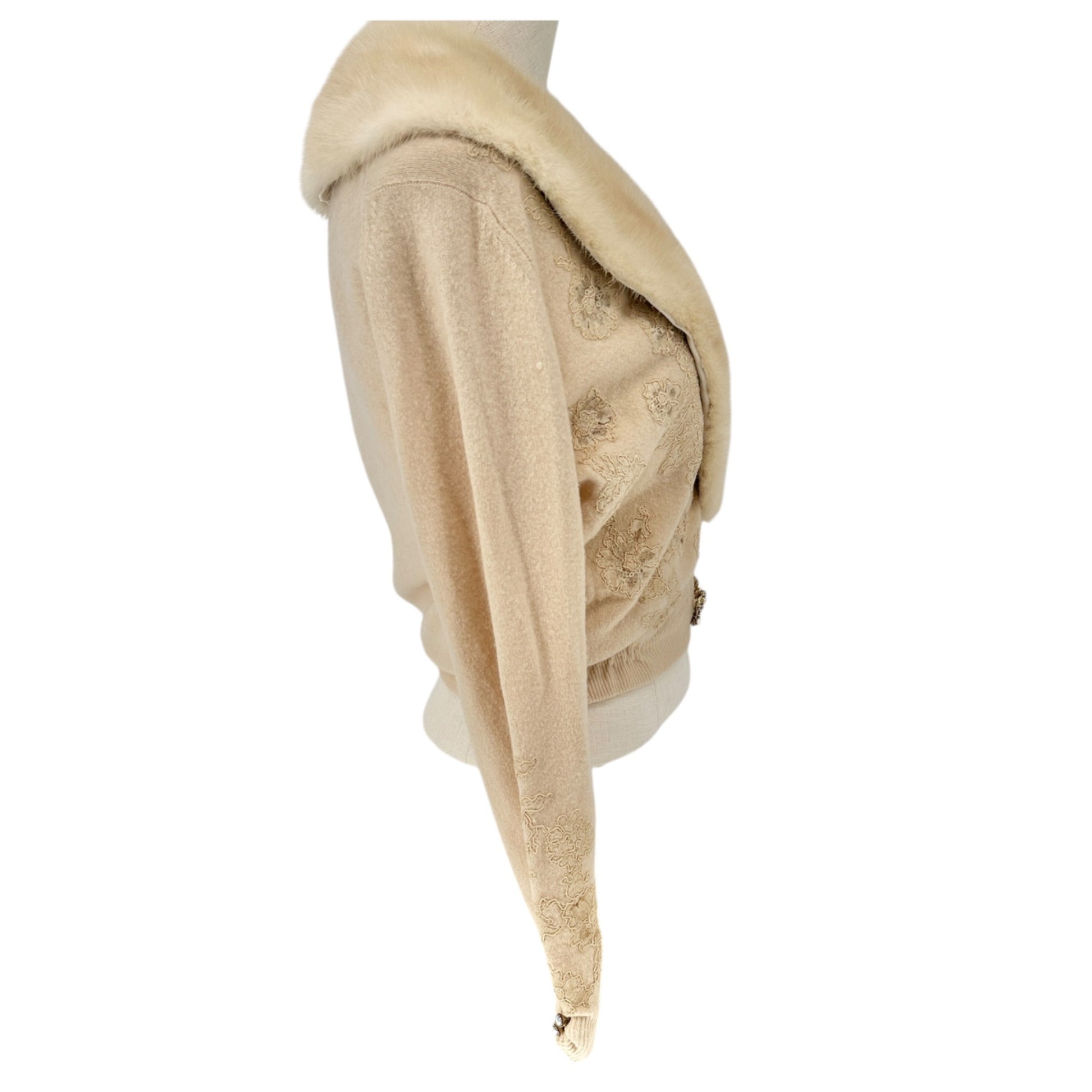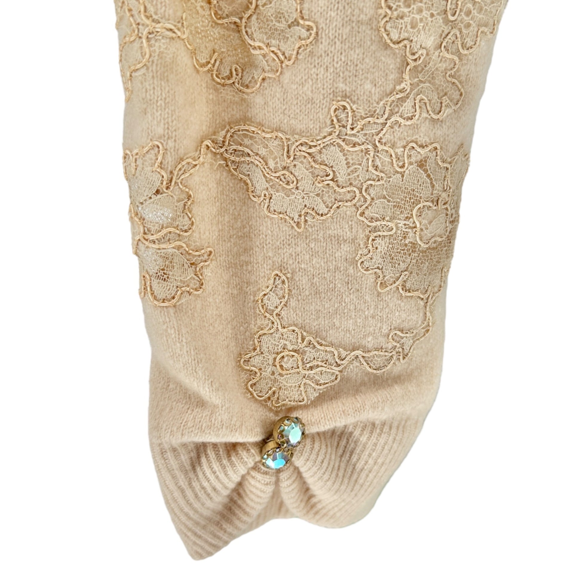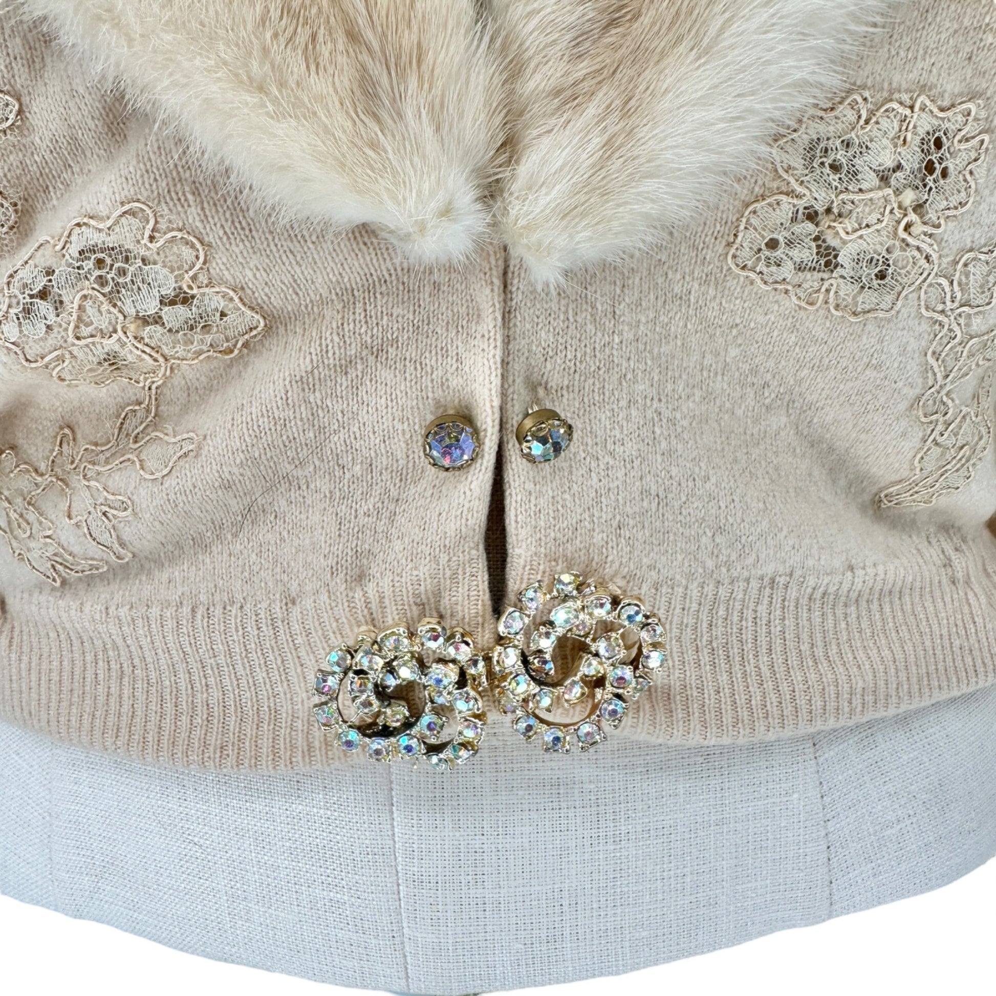 Vintage Pearl Kirsten Cardigan Womens S Beige Fur Collar Lace Rhinestone Detail