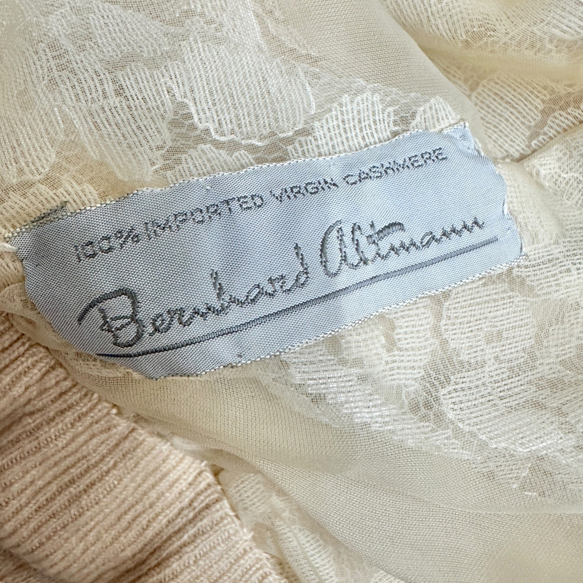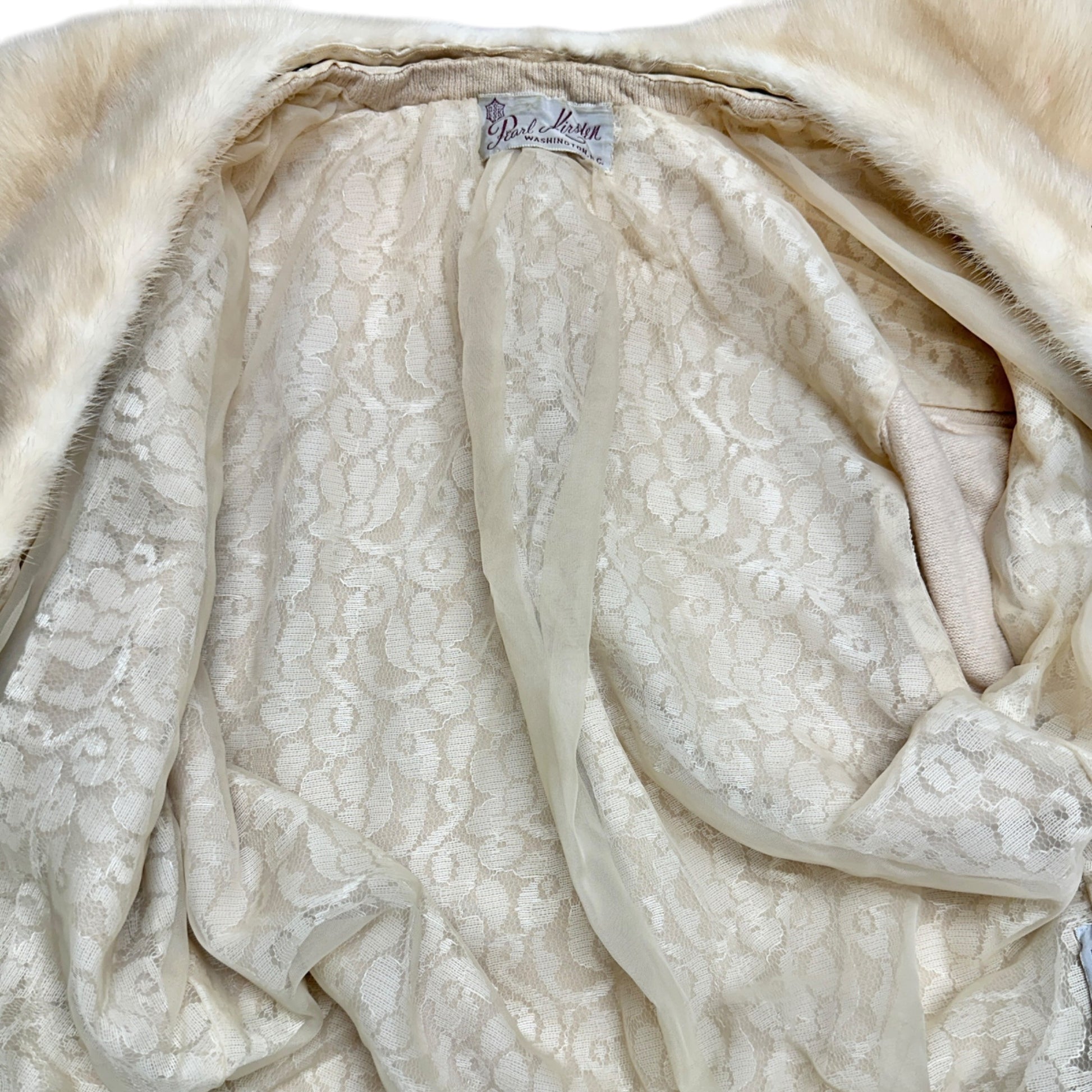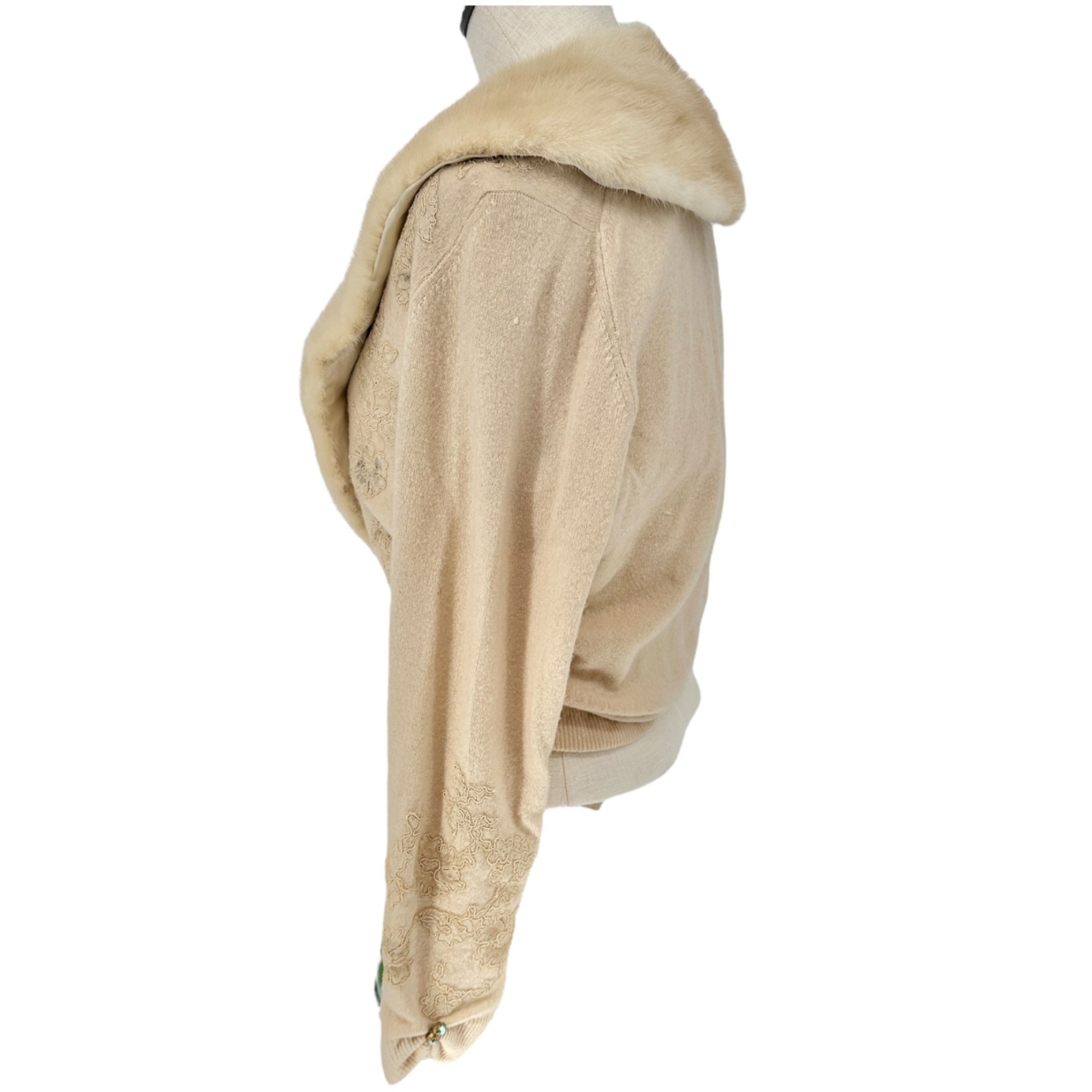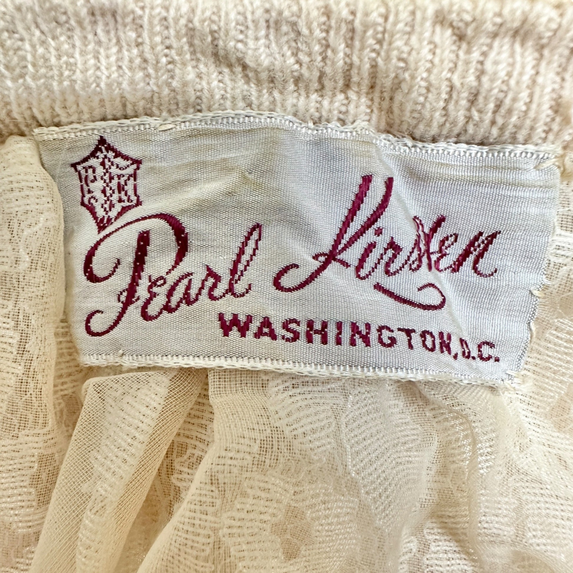 Vintage Pearl Kirsten Cardigan Womens S Beige Fur Collar Lace Rhinestone Detail