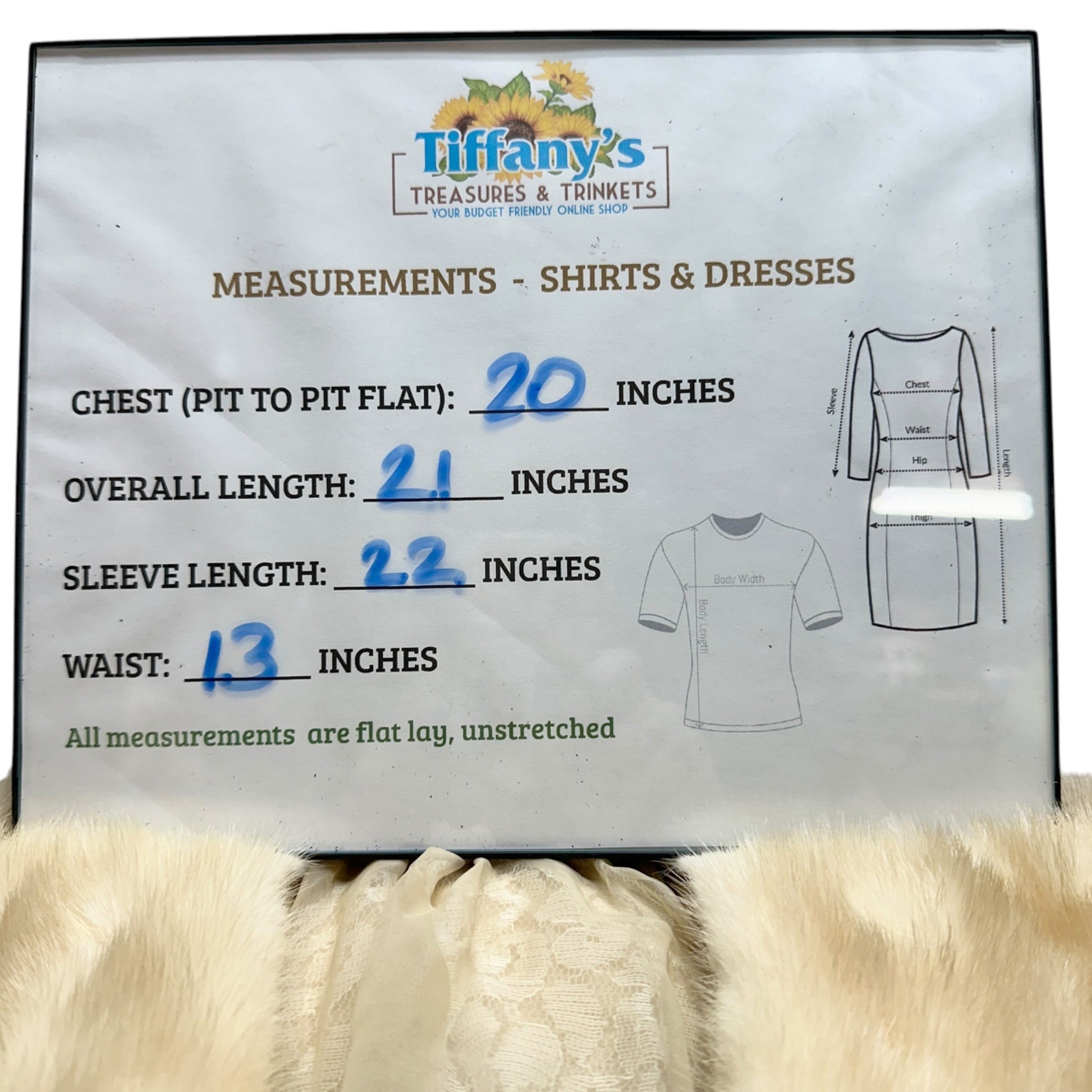 NO SIZE TAG. SEE MEASUREMENTS. WILL FIT LIKE A STANDARD WOMENS SMALL.