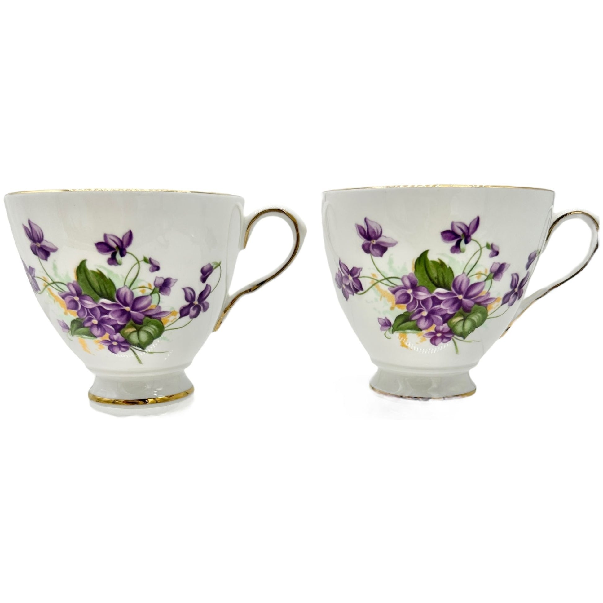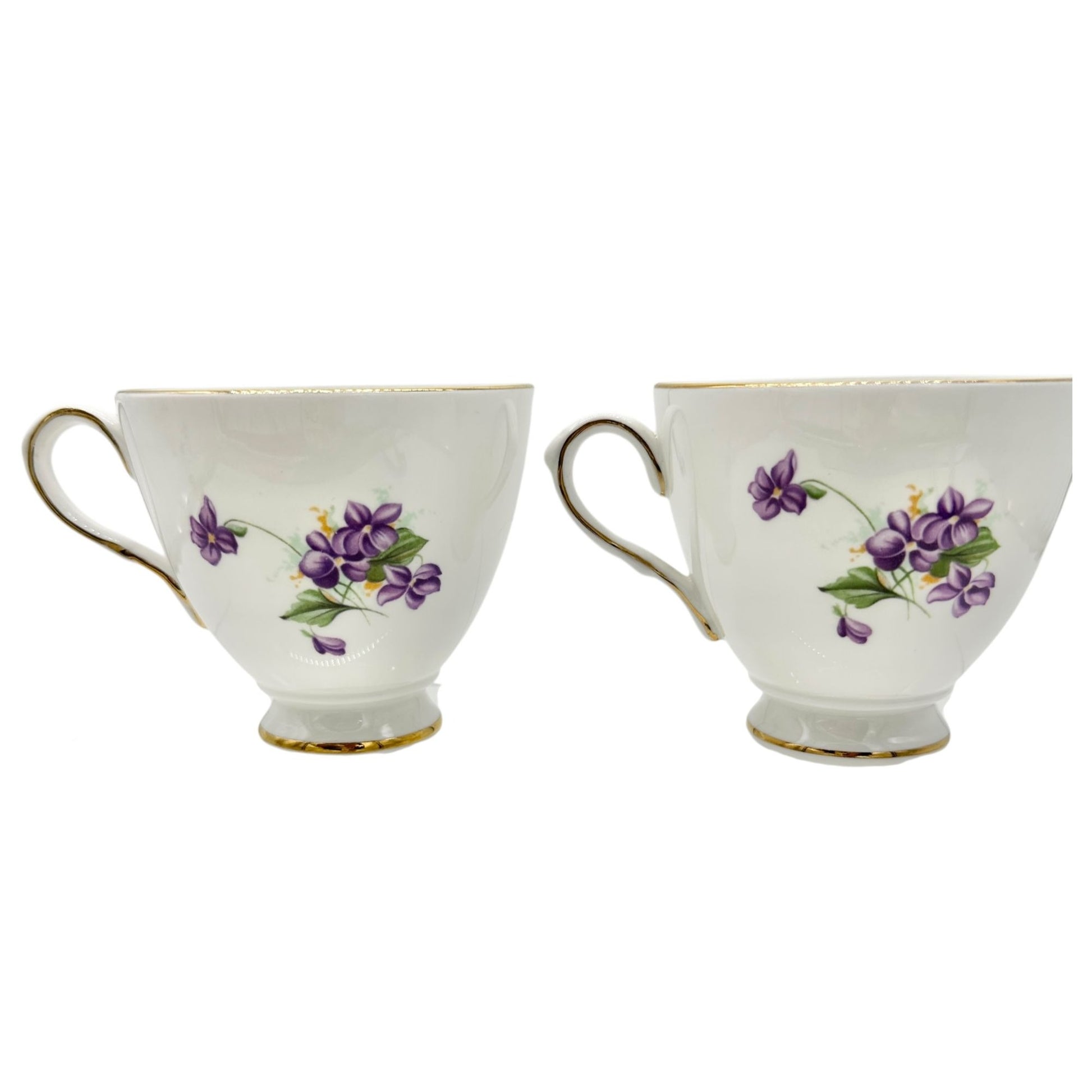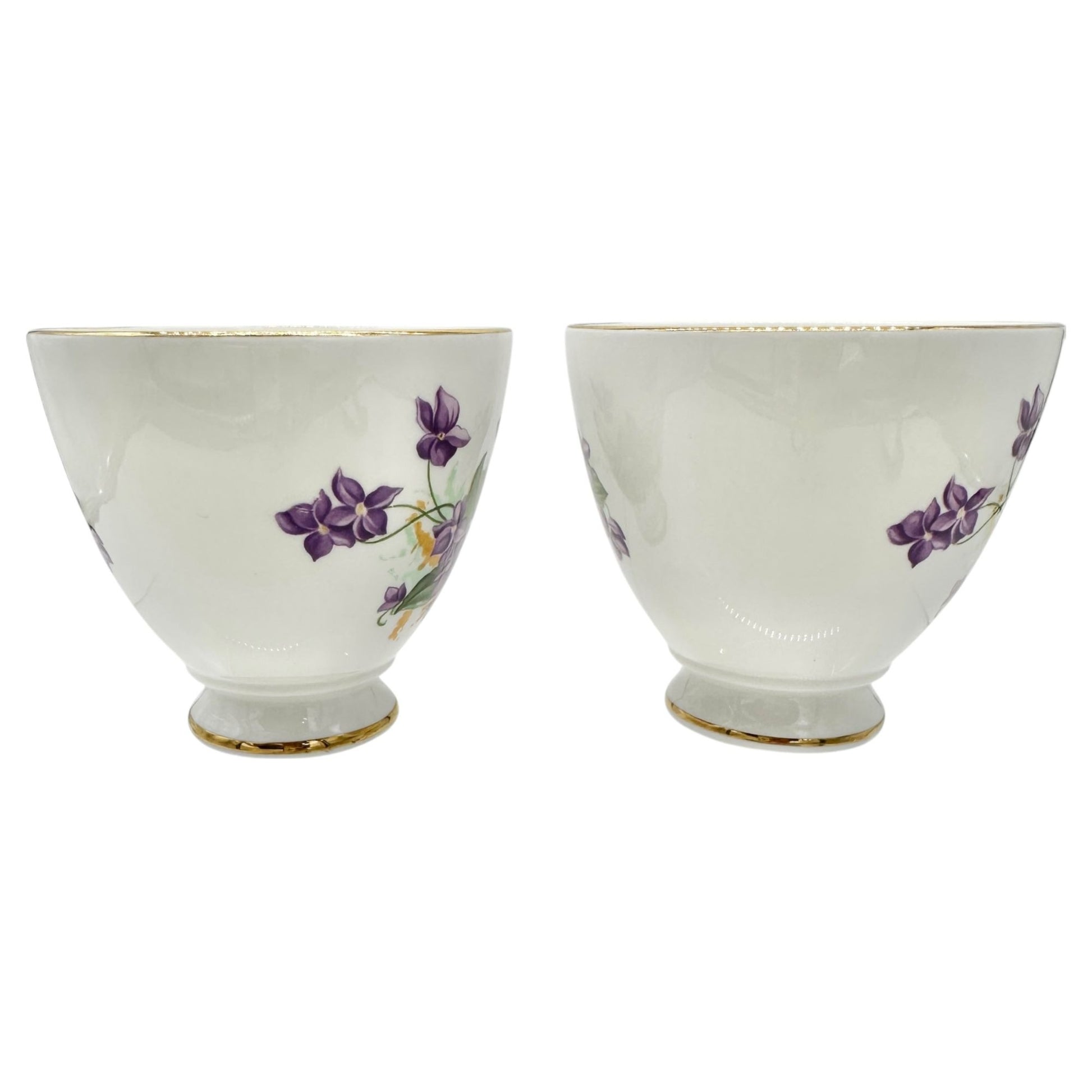 Vintage Queens Royal Bone China Tea Cups Pair Purple Floral Gold Trim England