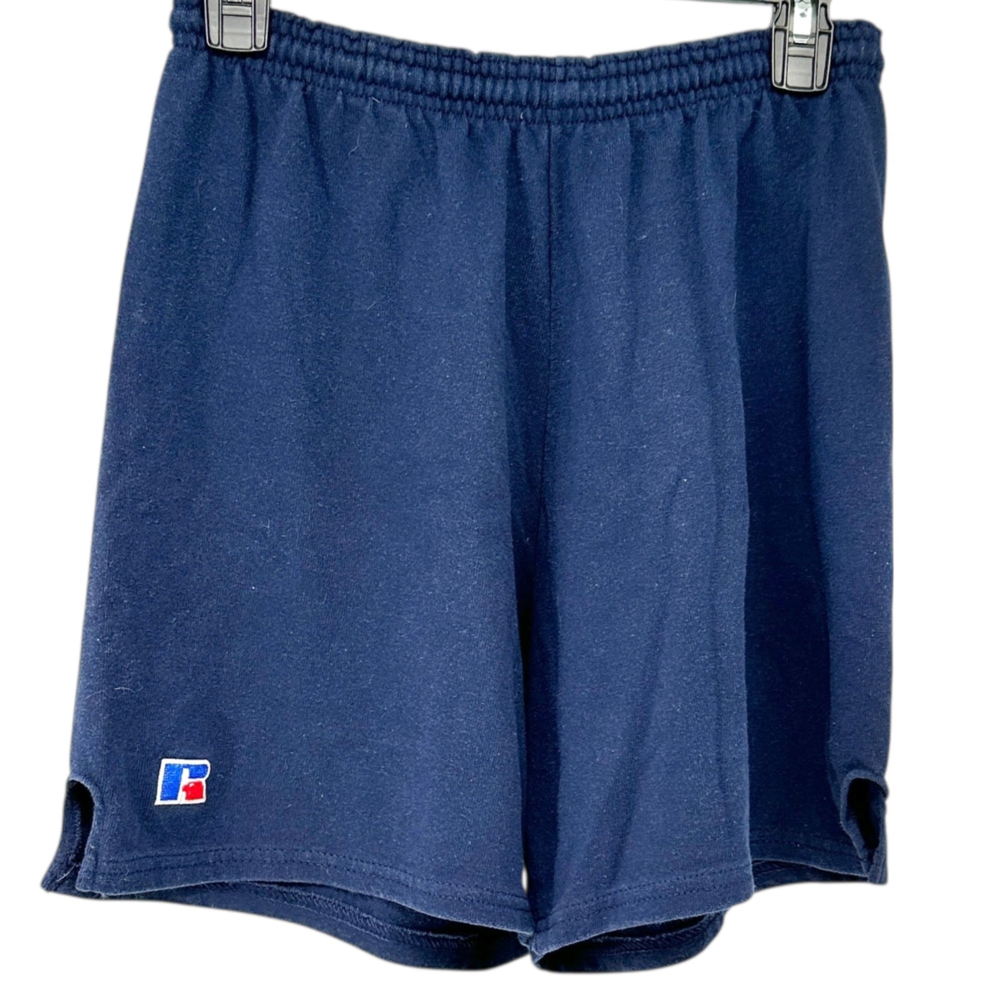 Vintage Russell Athletic Shorts Mens M Navy Blue Cotton Poly Blend Elastic Waist