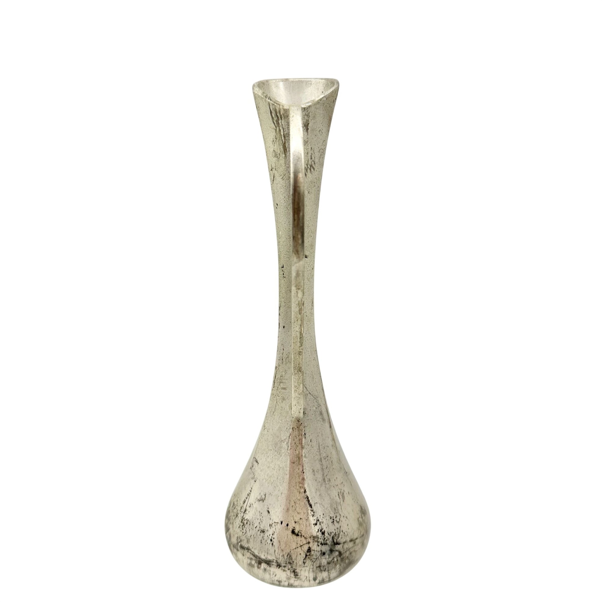 This delicate silver-plated vase tells a tale of refined craftsmanship. Its elegant curves and vintage charm make it a timeless centerpiece or collector's piece.