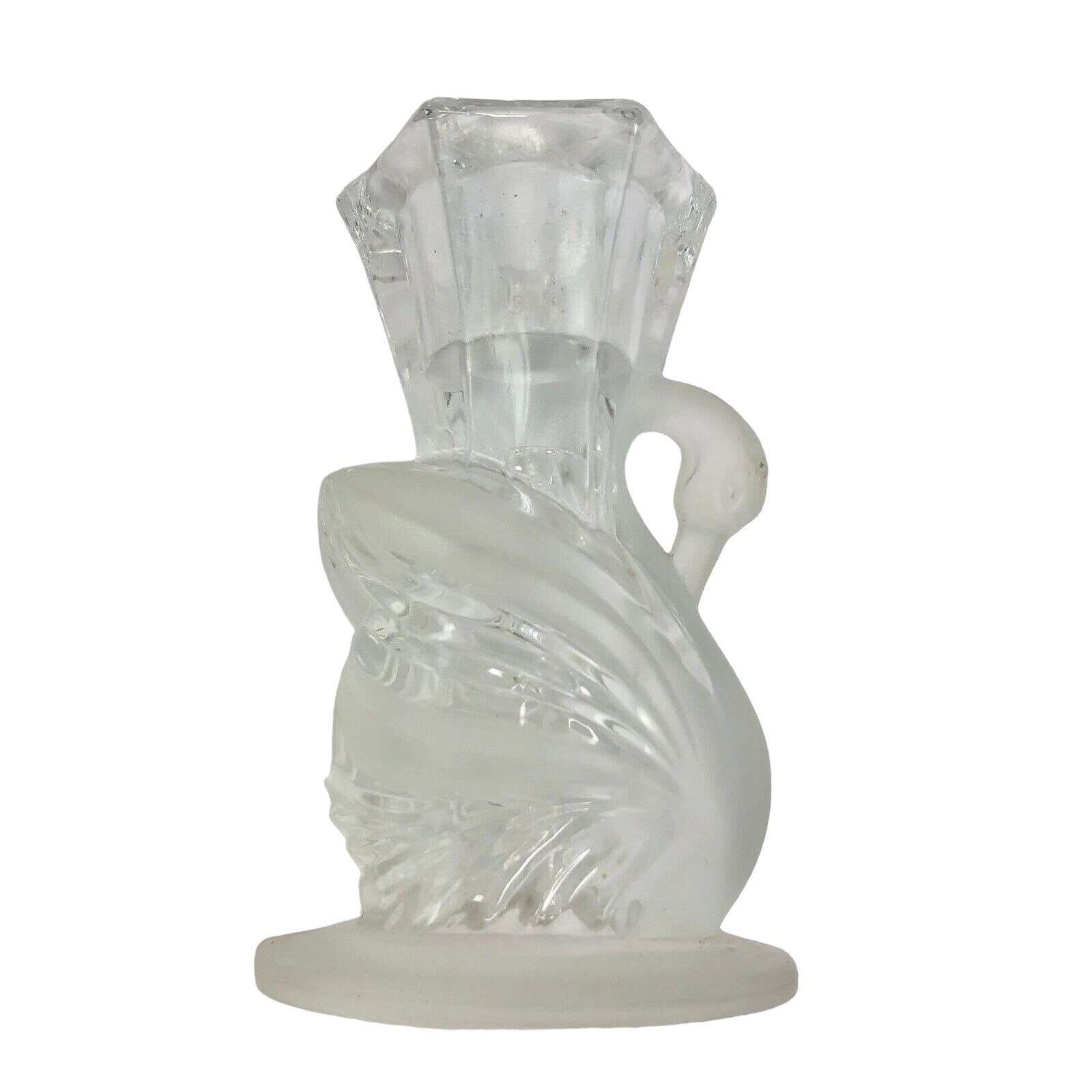 Vintage Swan Shaped Frosted & Clear Glass Candle Holder 4 Inches