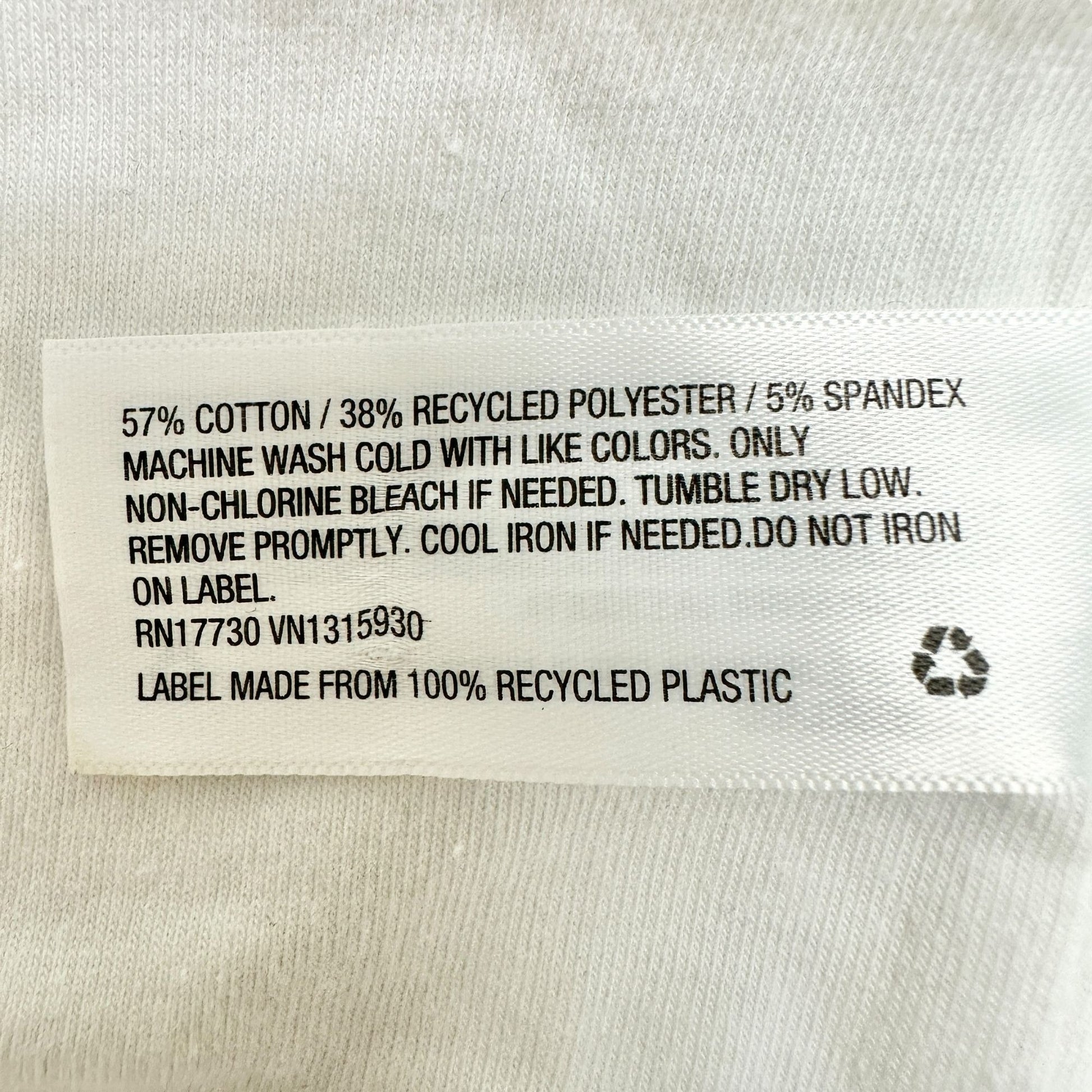 • Made of 57% cotton, 38% recycled polyester, 5% spandex