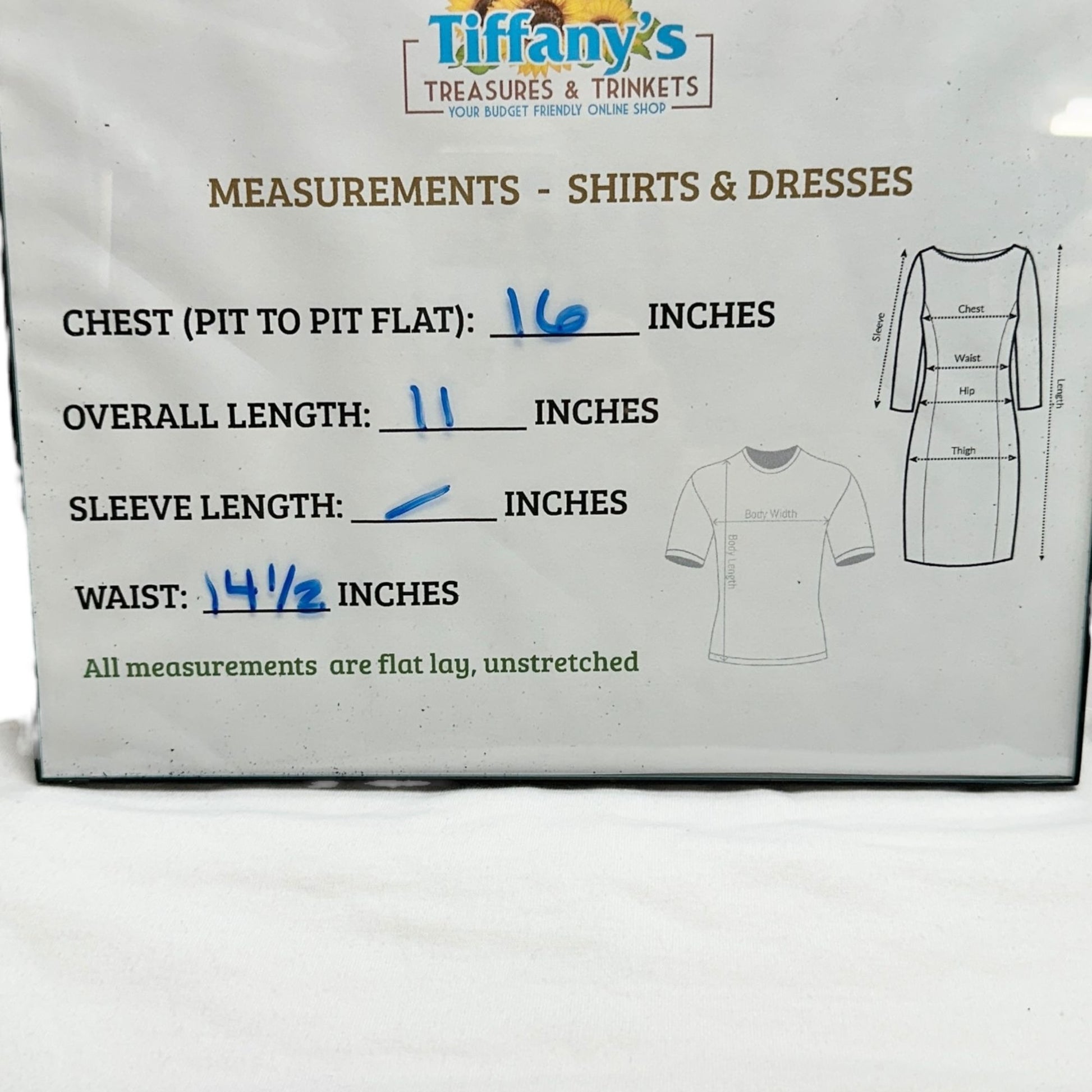 Chest (pit to pit flat) = 16 inches
