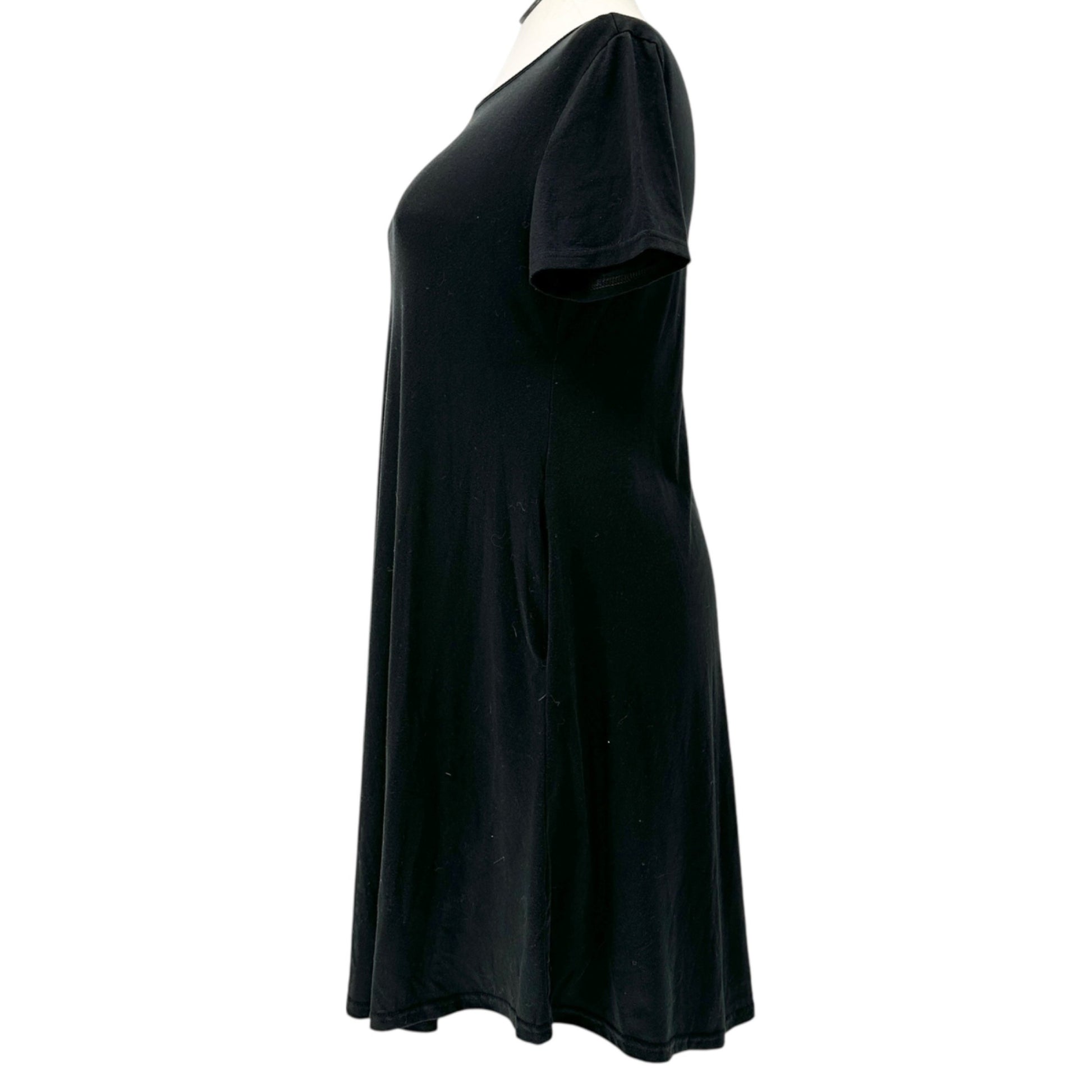 Womens Casual Dress XL A-Line Black SS Pockets Cotton Blend Soft Lightweight