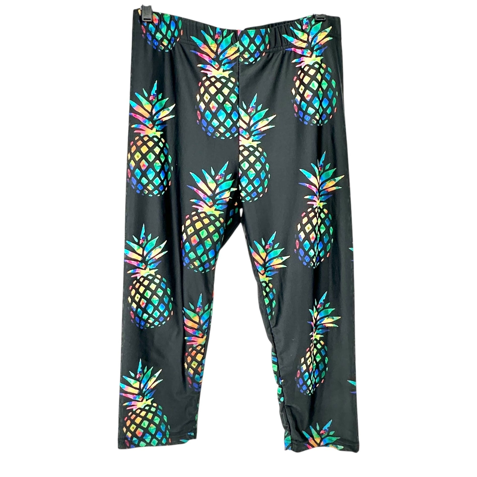 Womens Pineapple Print Capri Leggings Large Poly Spandex Blue Colorful Stretchy